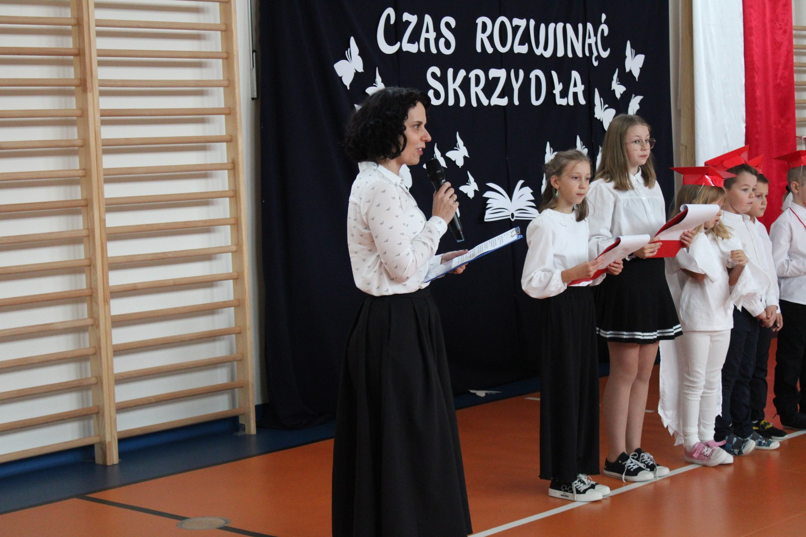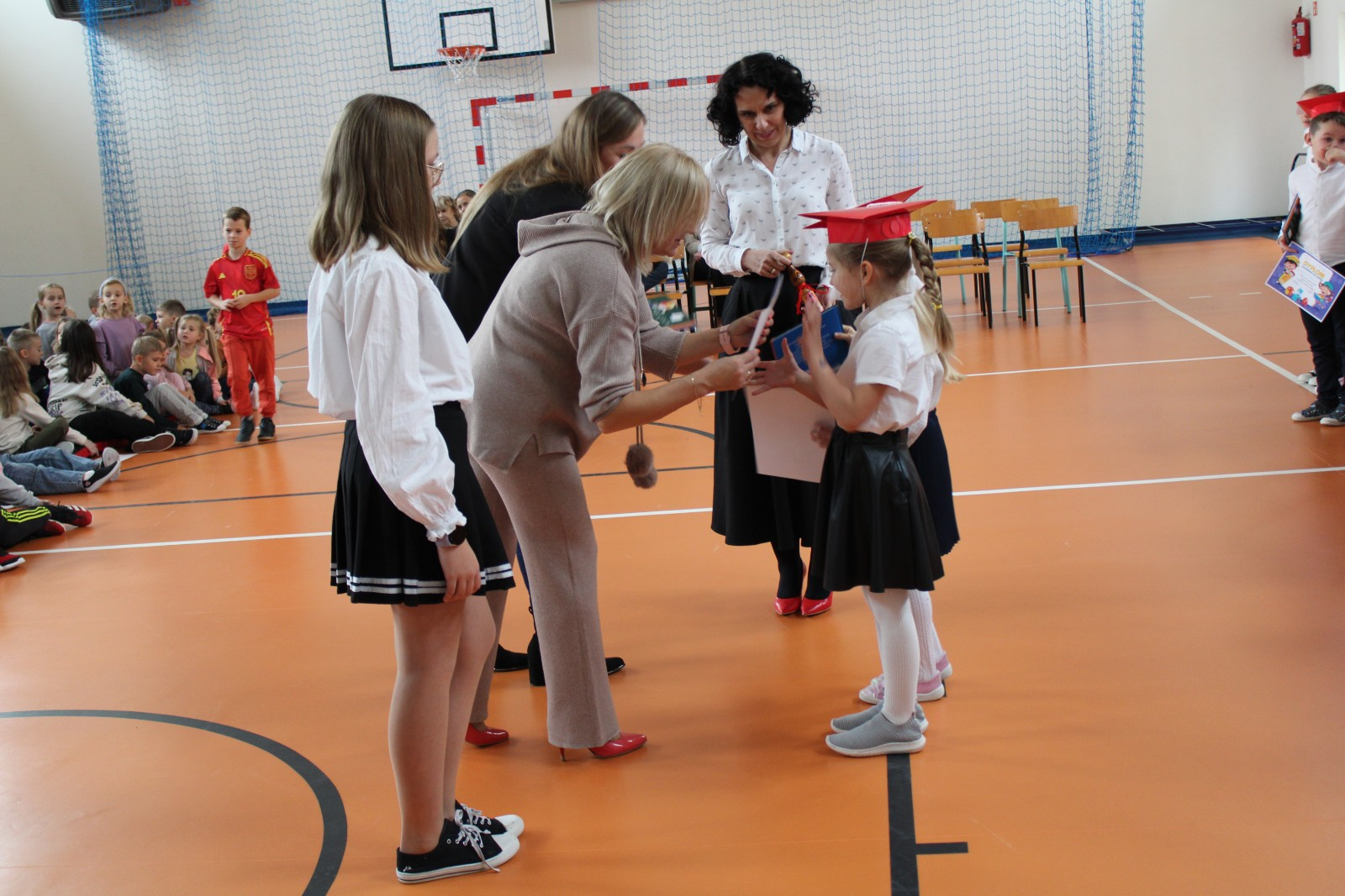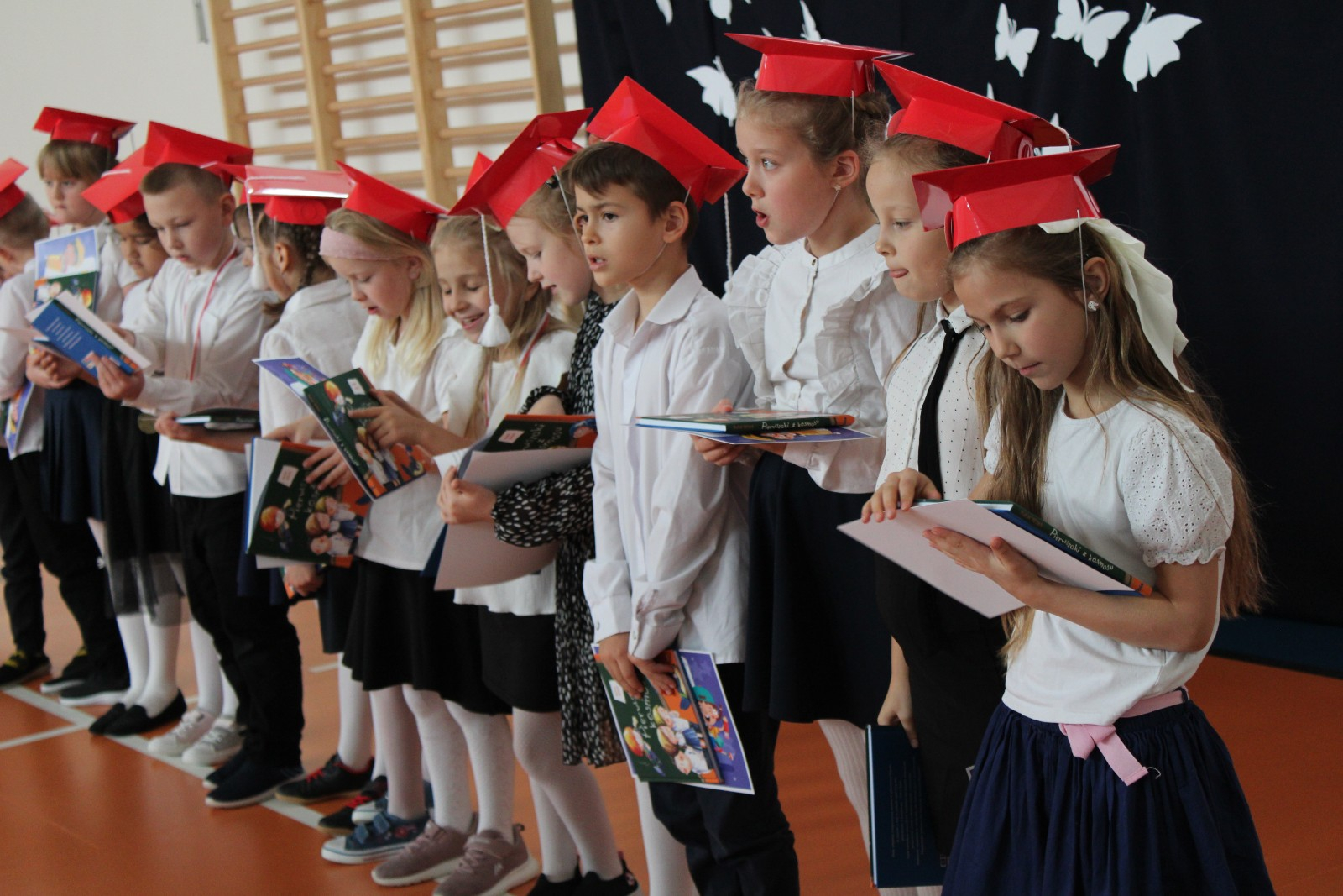 Społeczność szkolna powitała PIERWSZOKLASISTÓW gromkimi brawami.