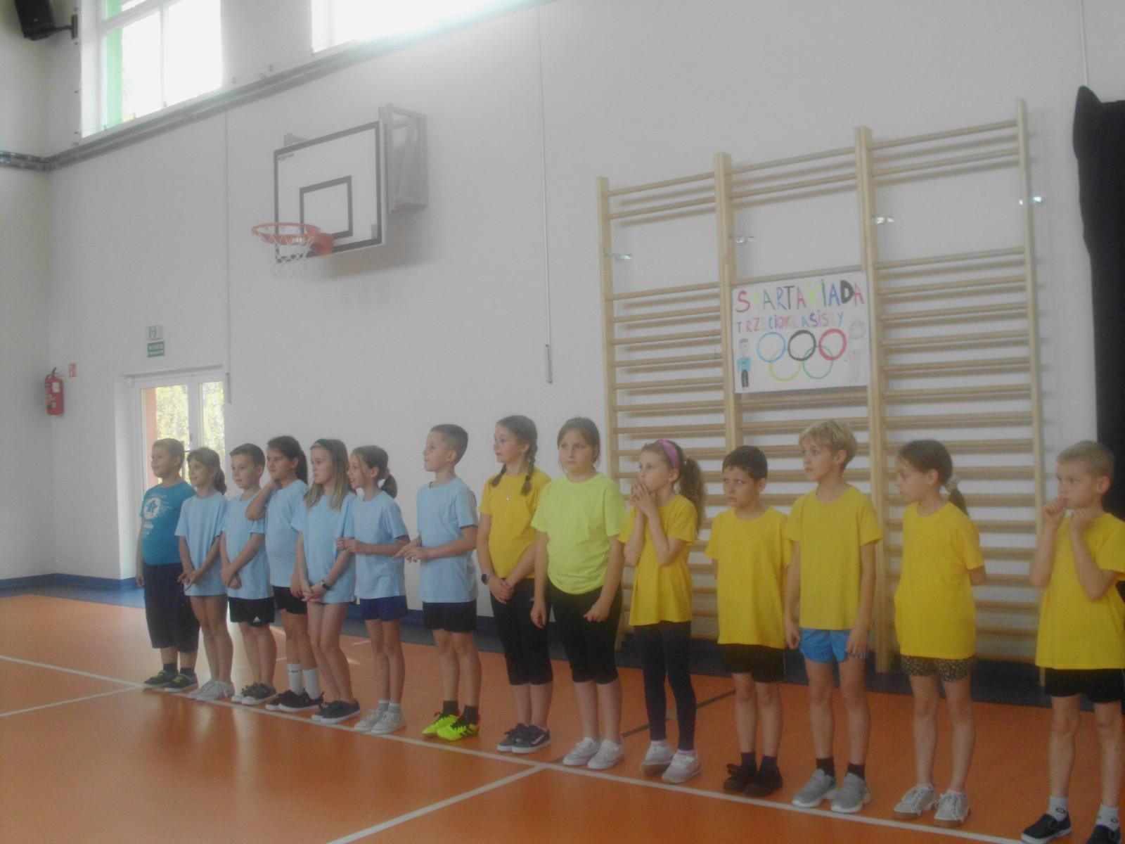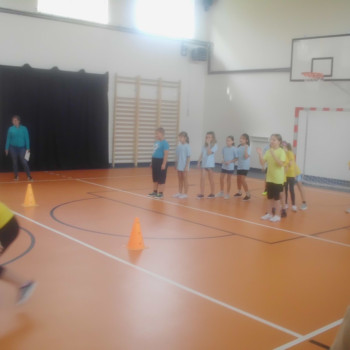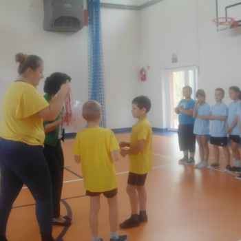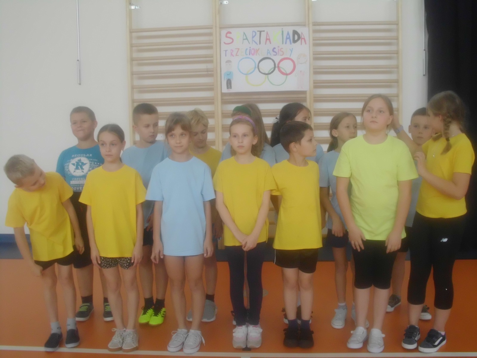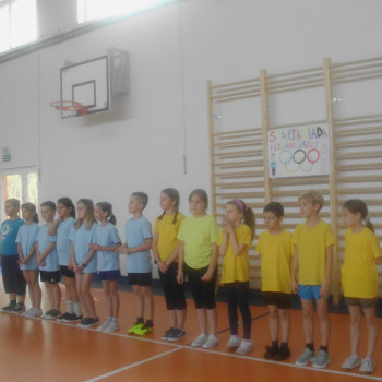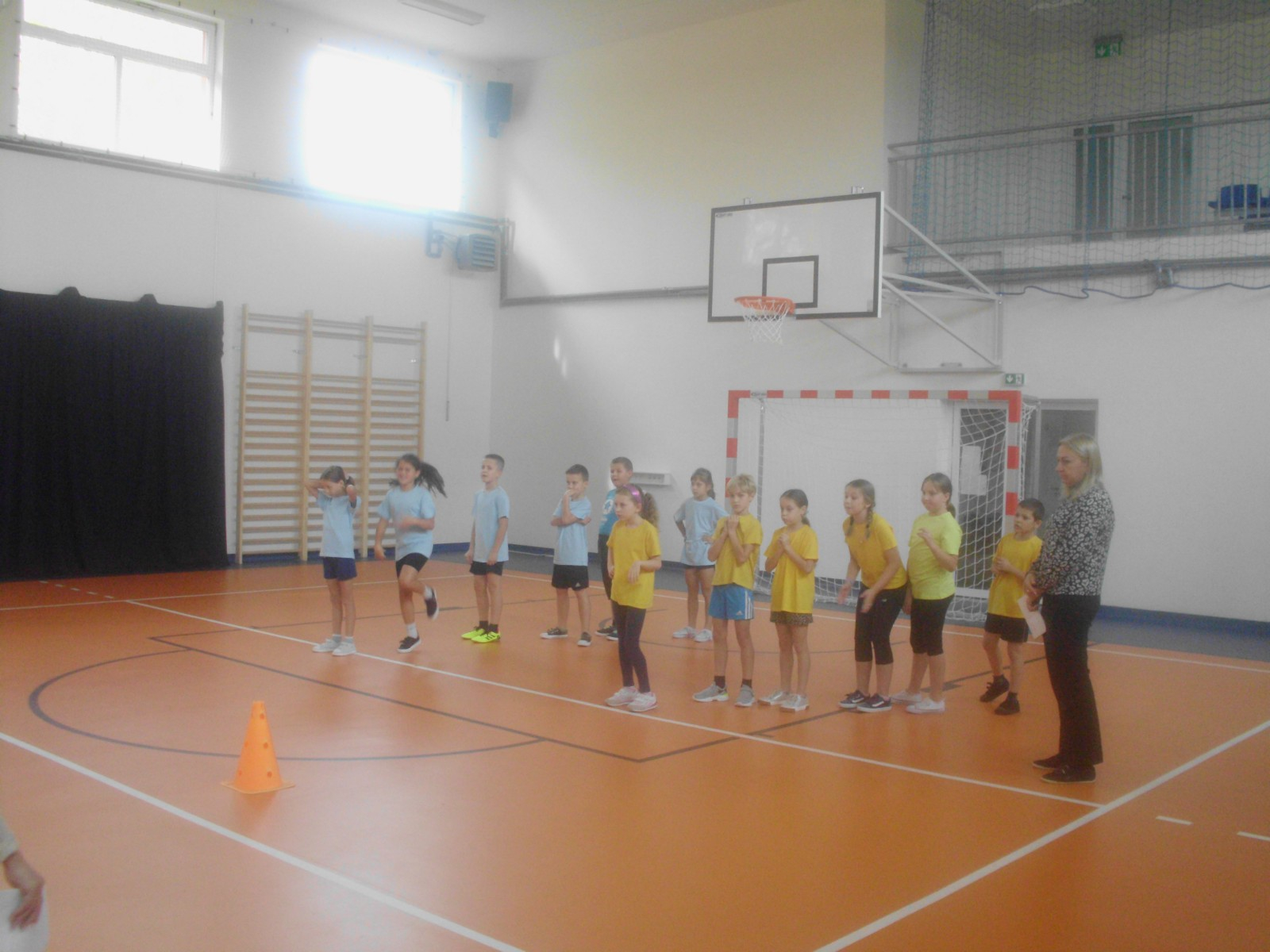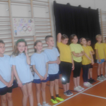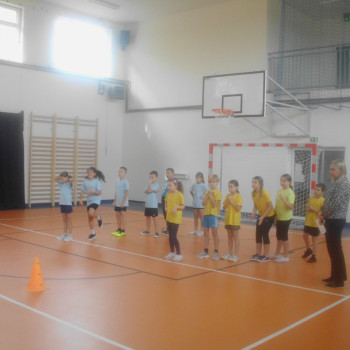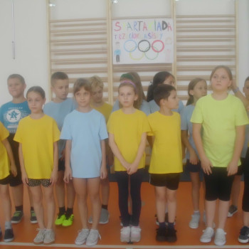 w dniu 23.10.2023 r. odbyła się w naszej szkole ,,Spartakiada trzecioklasisty” pod hasłem ,,Ruch to zdrowie”. Pani Dyrektor Małgorzata Szostak rozpoczęła spartakiadę serdecznym powitaniem wszystkich małych sportowców. Po rozgrzewce sportowej przyszedł czas na przystąpienie do konkurencji sportowych. W trakcie odbywania się zawodów oceniana była precyzyjność wykonywanego zadania oraz szybkość. Zawodnicy z zapałem i poświęceniem uczestniczyli w zawodach.