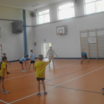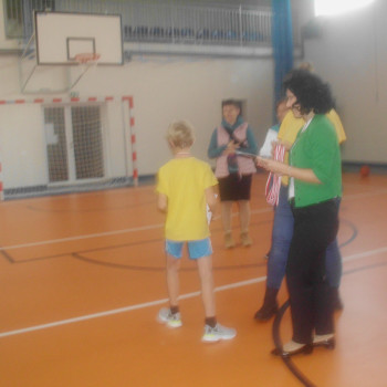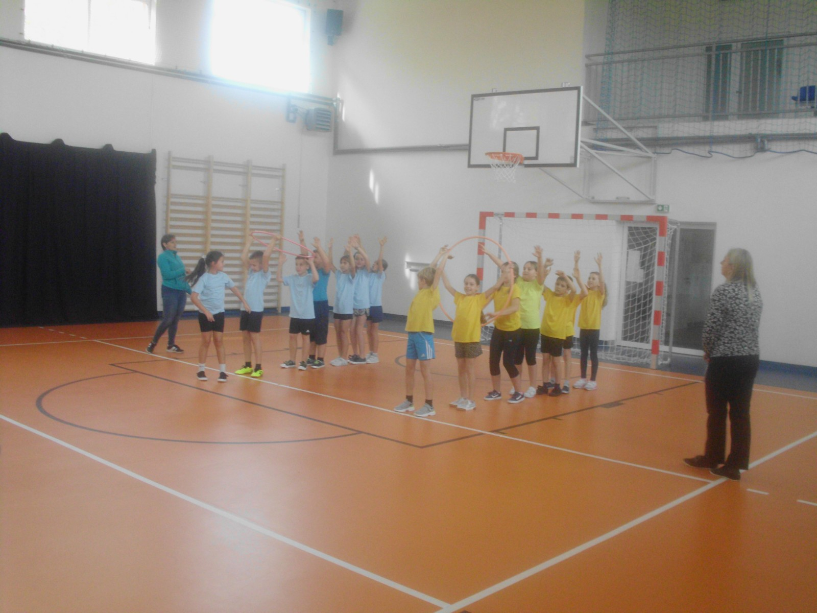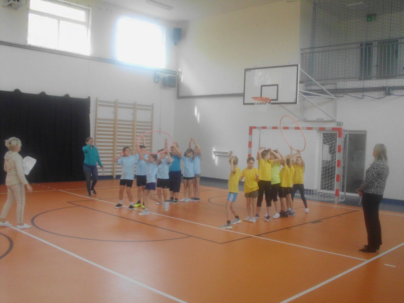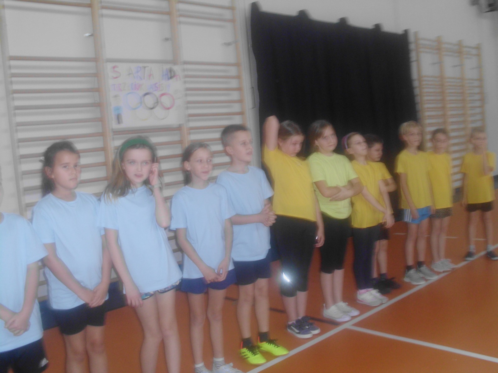 w dniu 23.10.2023 r. odbyła się w naszej szkole ,,Spartakiada trzecioklasisty” pod hasłem ,,Ruch to zdrowie”. Pani Dyrektor Małgorzata Szostak rozpoczęła spartakiadę serdecznym powitaniem wszystkich małych sportowców. Po rozgrzewce sportowej przyszedł czas na przystąpienie do konkurencji sportowych. W trakcie odbywania się zawodów oceniana była precyzyjność wykonywanego zadania oraz szybkość. Zawodnicy z zapałem i poświęceniem uczestniczyli w zawodach.