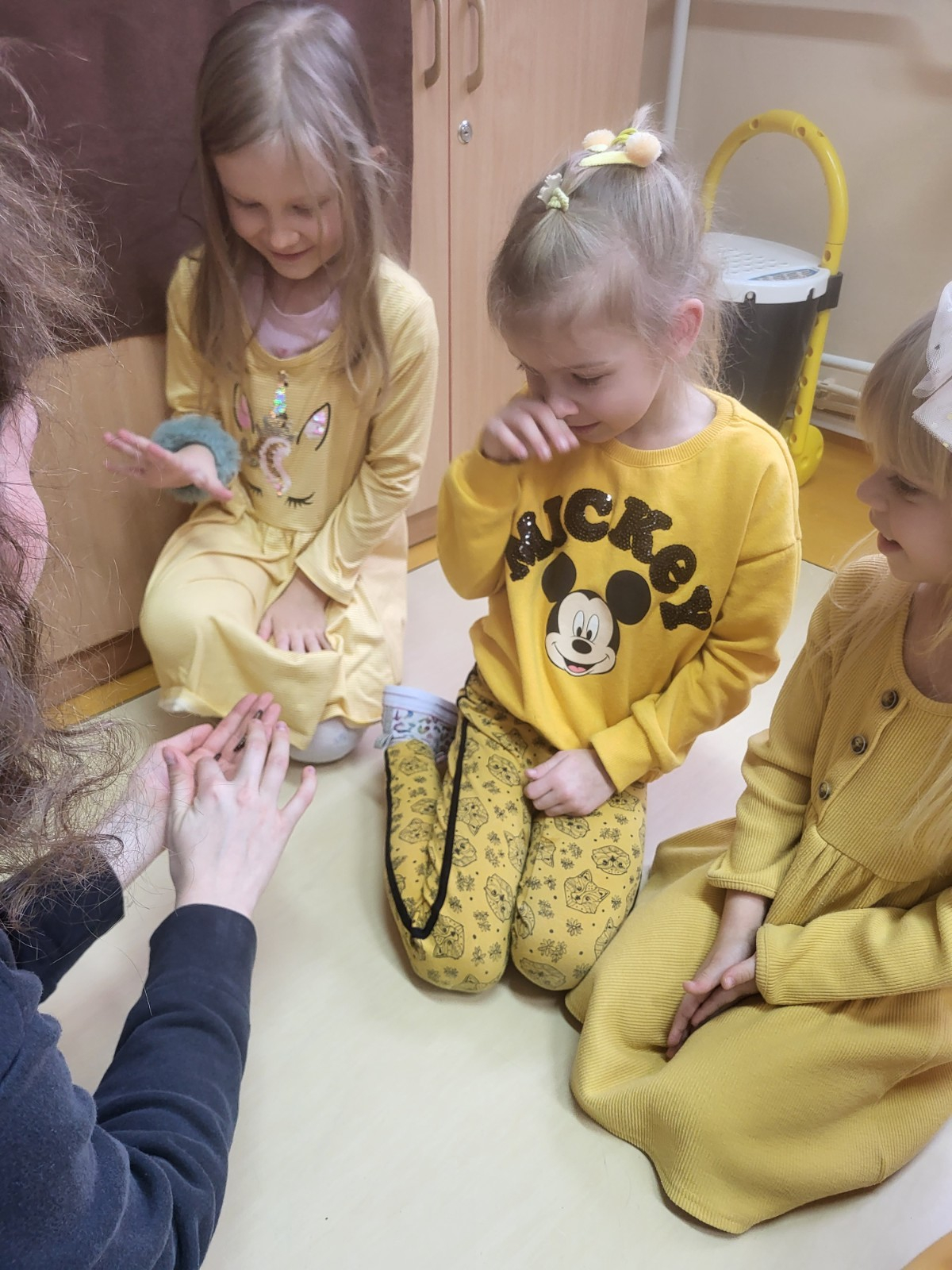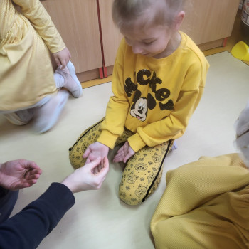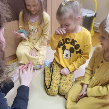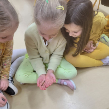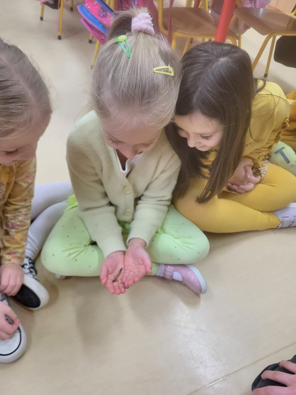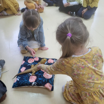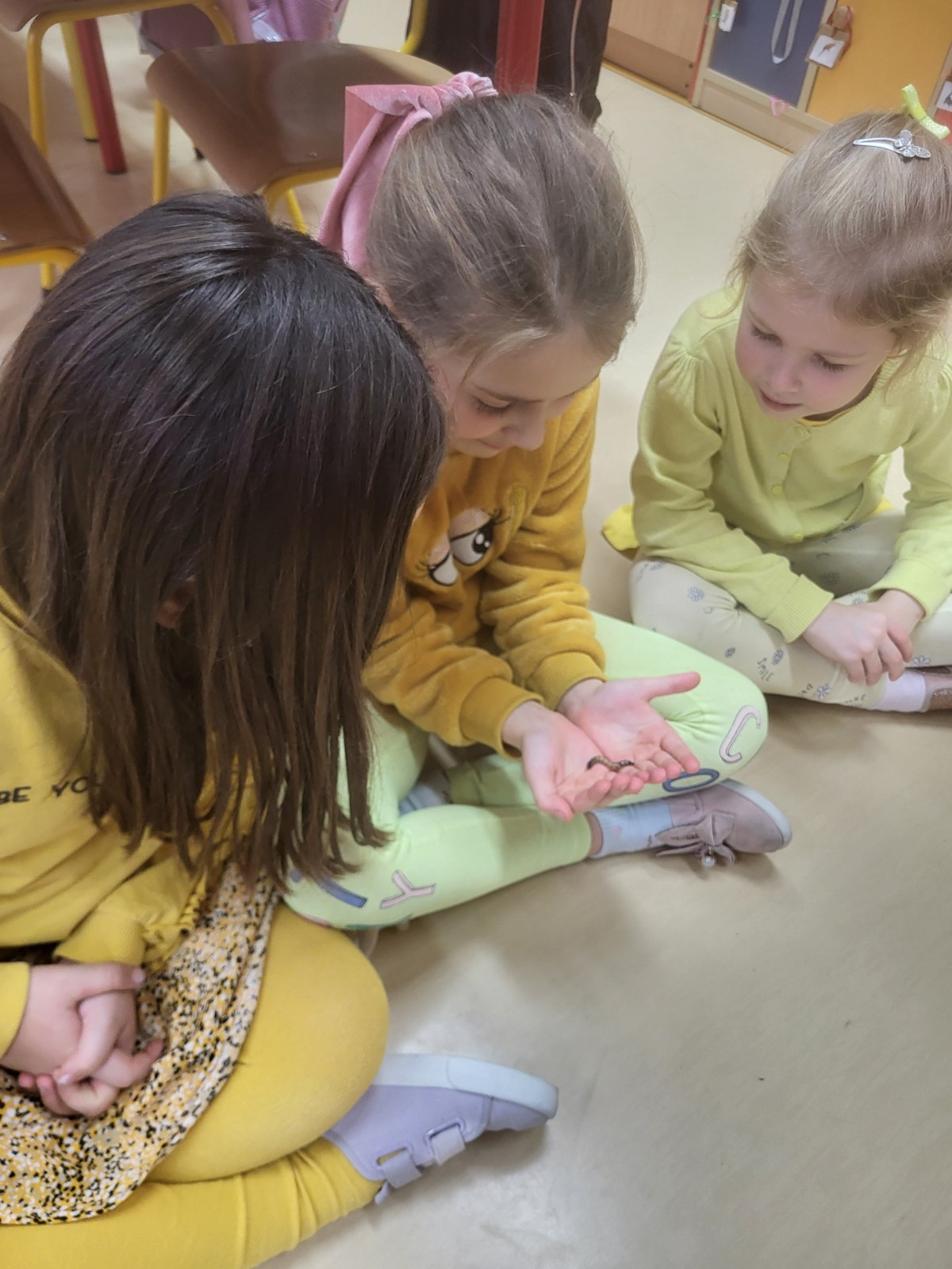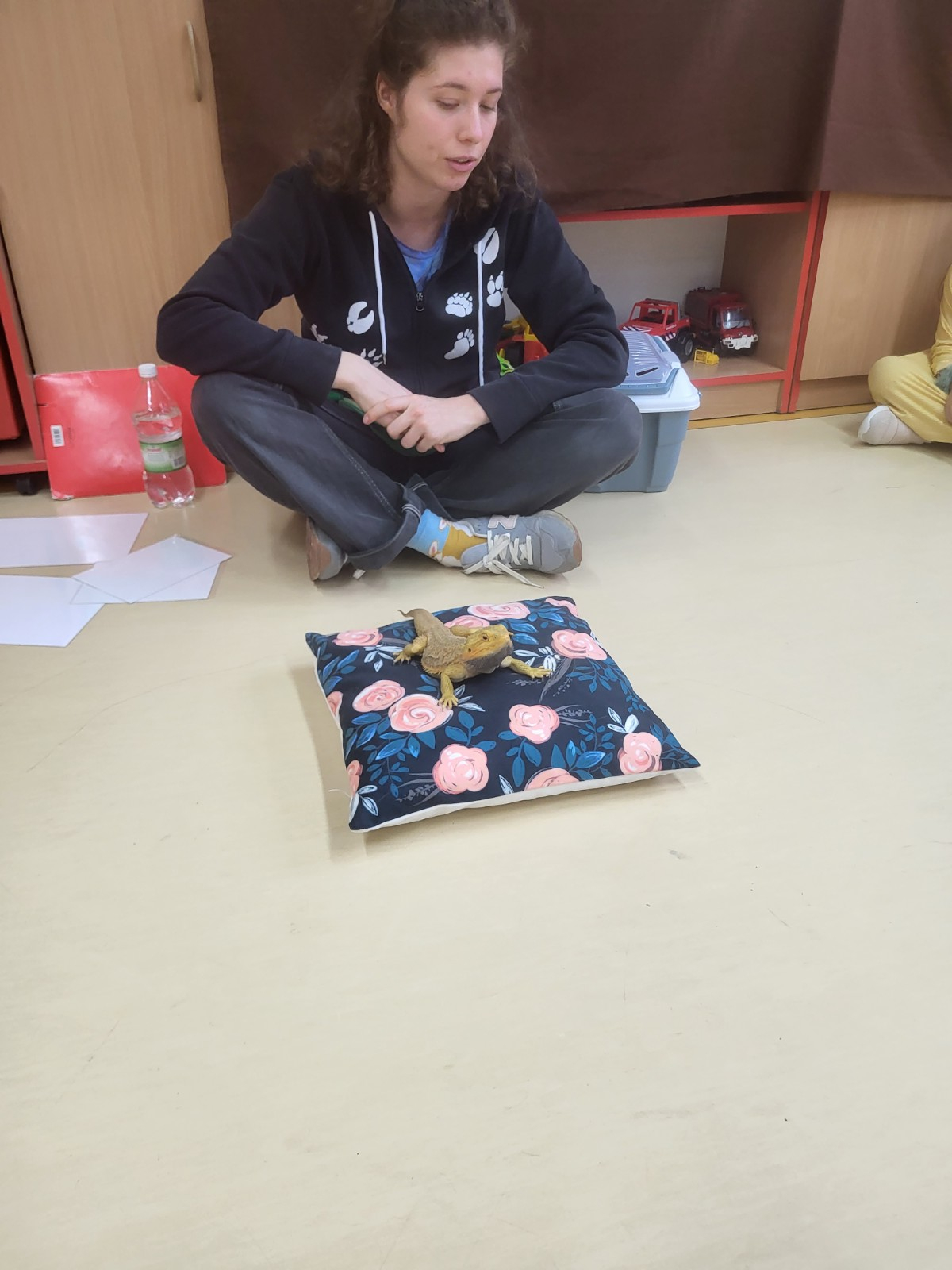 Dzieci z zainteresowaniem słuchały opowiesci o życiu i zwyczajach jaszczurki. Miały okazje obejrzeć pokarm zwierzątka, a nawet pogłaskać jaszczurkę.