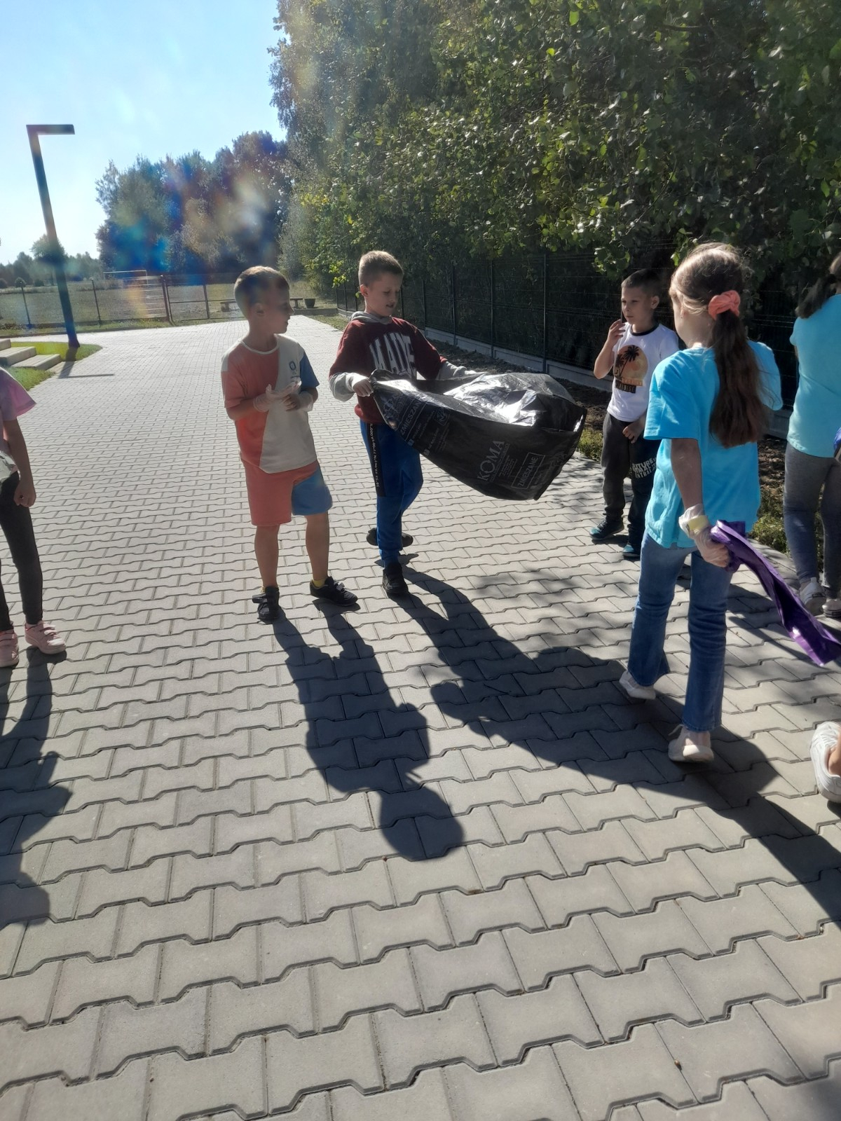 15 września 2023 r. członkowie Koła Ekologicznego zaopatrzeni w worki i jednorazowe rękawiczki po raz kolejny uczestniczyli w akcji ekologicznej. Dzieci sprzątały teren wokół szkoły oraz część lasku należącego do szkoły.