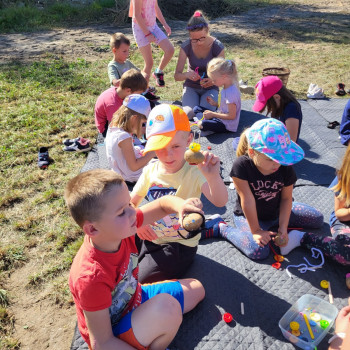 Wszystkie dzieci mogły wykazać się sprawnością w zbieraniu ziemniaków , zwinnością w noszeniu ziemniaka na łyżce.