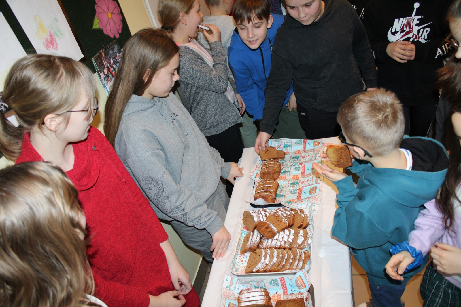 Uczniowie klasy III oraz członkowie Koła PCK wręczyli dyrektorowi, nauczycielom i pracownikom szkoły słodki upominek i karty świąteczne z życzeniami.Na zakończenie głos zabrała pani Dyrektor Małgorzata Szostak,która podziękowała uczniom i organizatorom oraz złożyła piękne,pełne ciepła życzenia świąteczne i noworoczne.