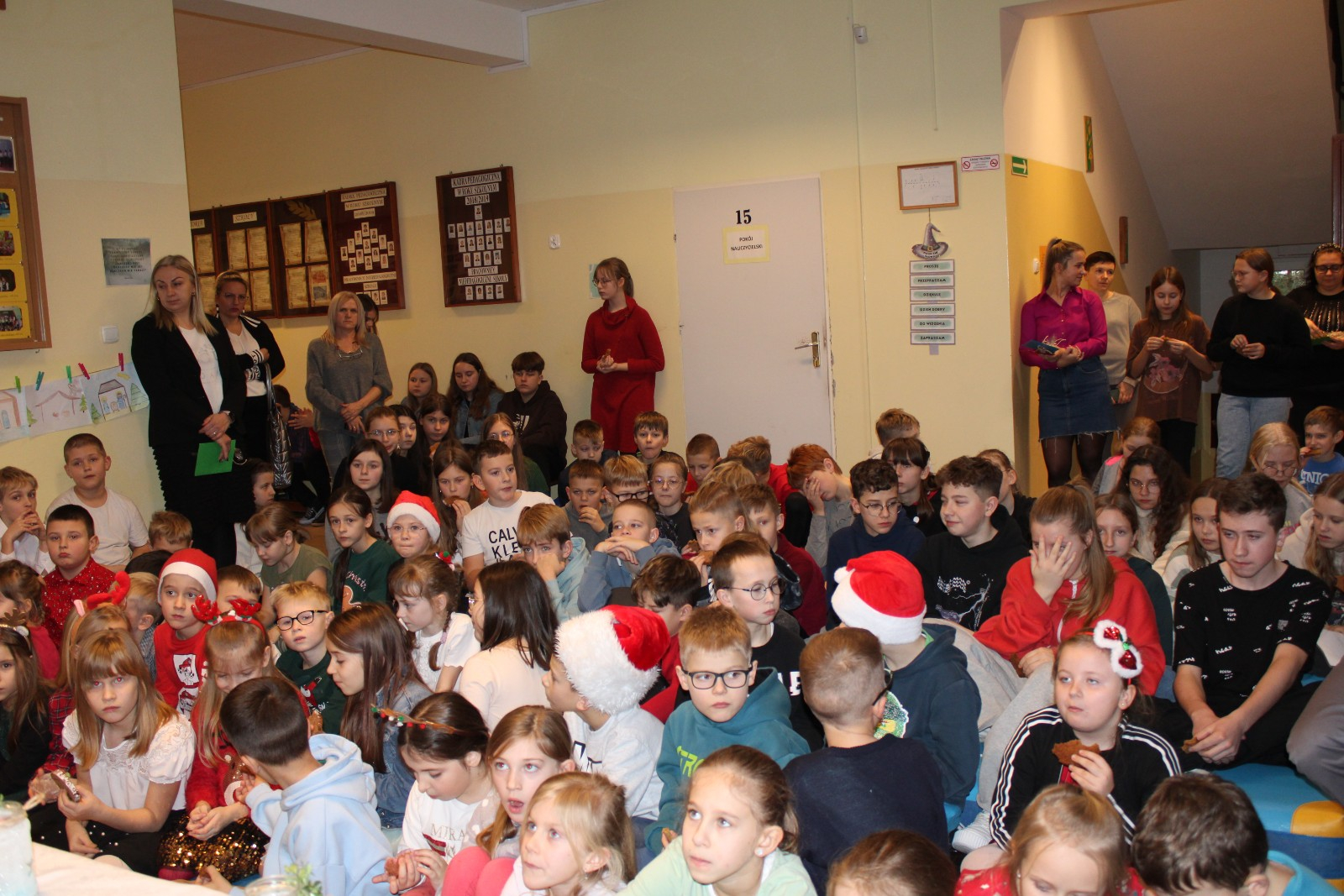 Bożonarodzeniowe melodie, zapach świerkowych gałązek, piękny wystrój sal lekcyjnych i korytarzy-wszystkie te elementy sprawiły,że w szkole zapanował uroczysty , prawdziwie świąteczny nastrój.