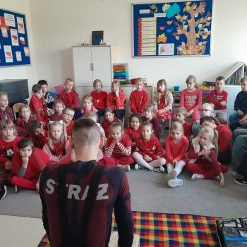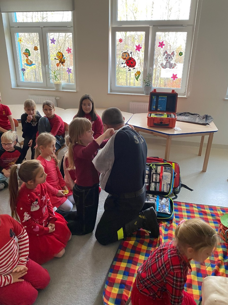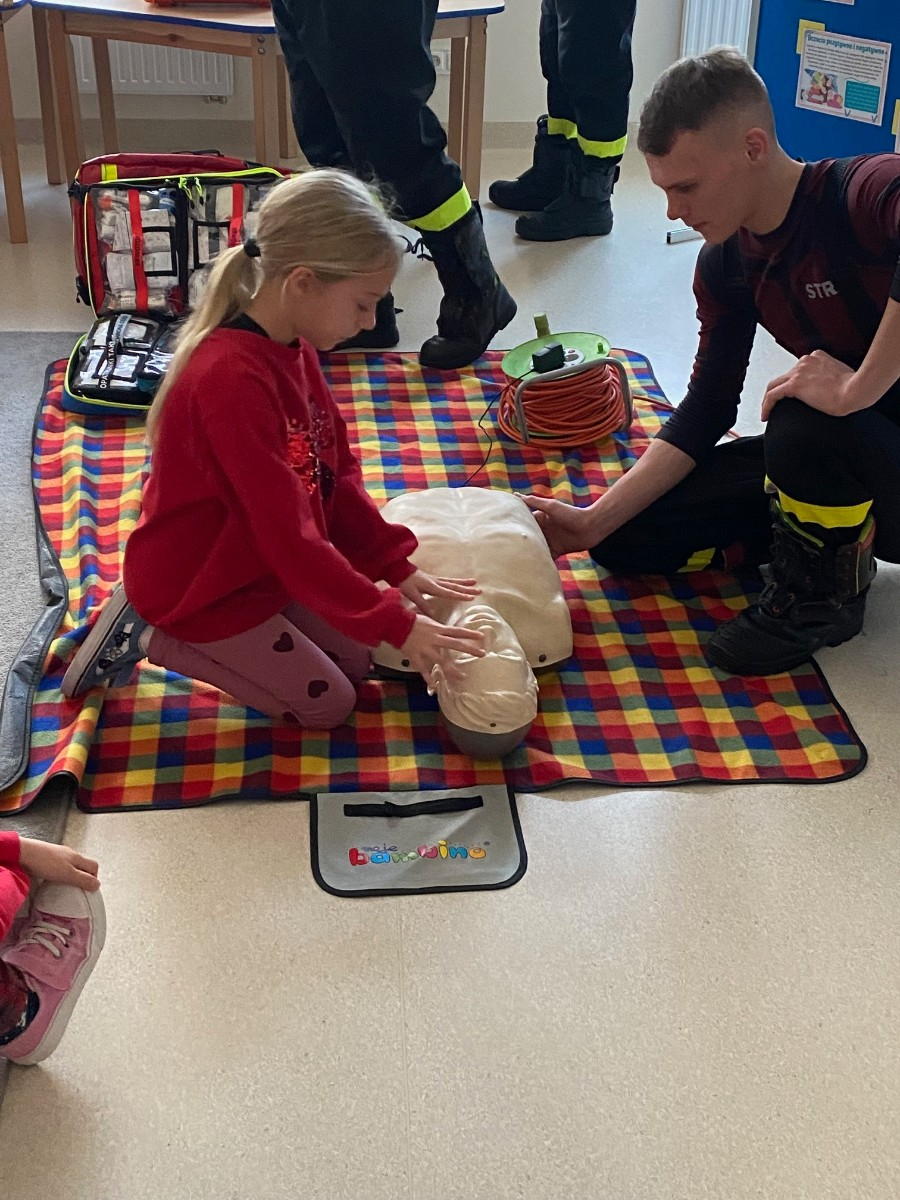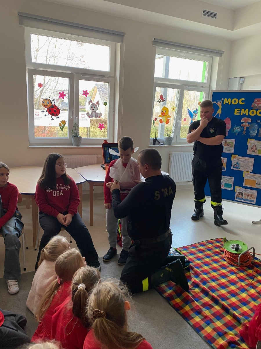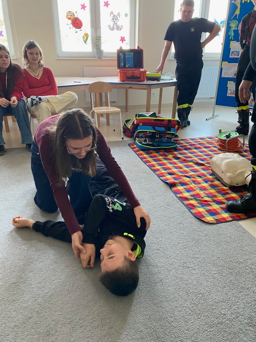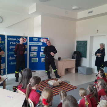 We wtorek naszymi gośćmi byli strażacy z OSP Pogorzel, którzy uczyli uczniów udzielania pierwszej pomocy przedmedycznej.