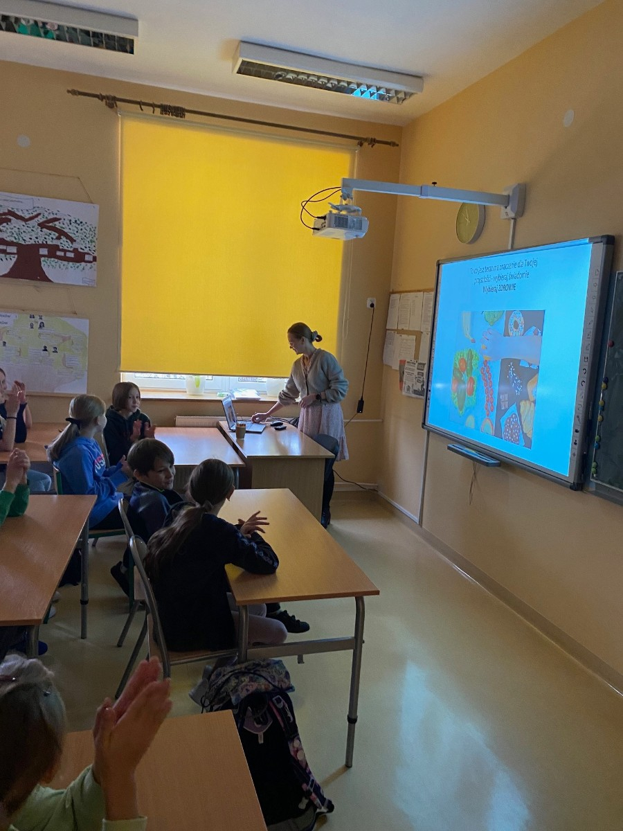 Piątek był dniem poświęconym zdrowiu, dlatego odwiedziła nas pani Barbara Jałocha - dietetyk, która przeprowadziła w klasach IV-VIII warsztaty na temat zdrowego odżywiania. Klasy I-III przygotowywały zdrowe drugie śniadanie. Na każdy obszar profilaktyki zostały wykonane także tematyczne gazetki, które są dostępne w holu głównym.