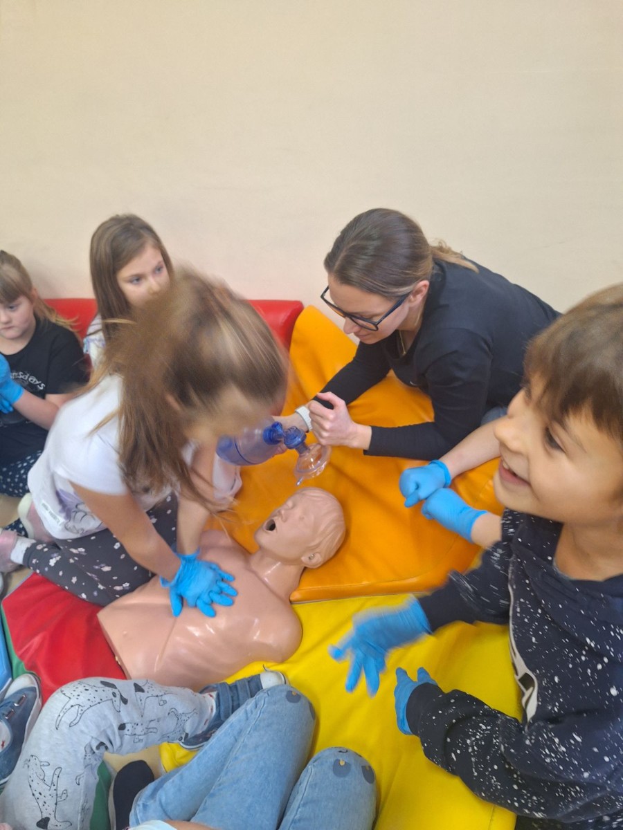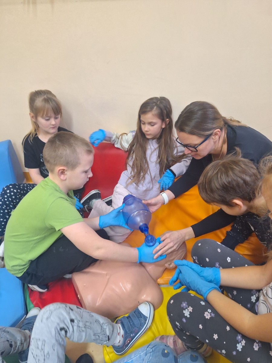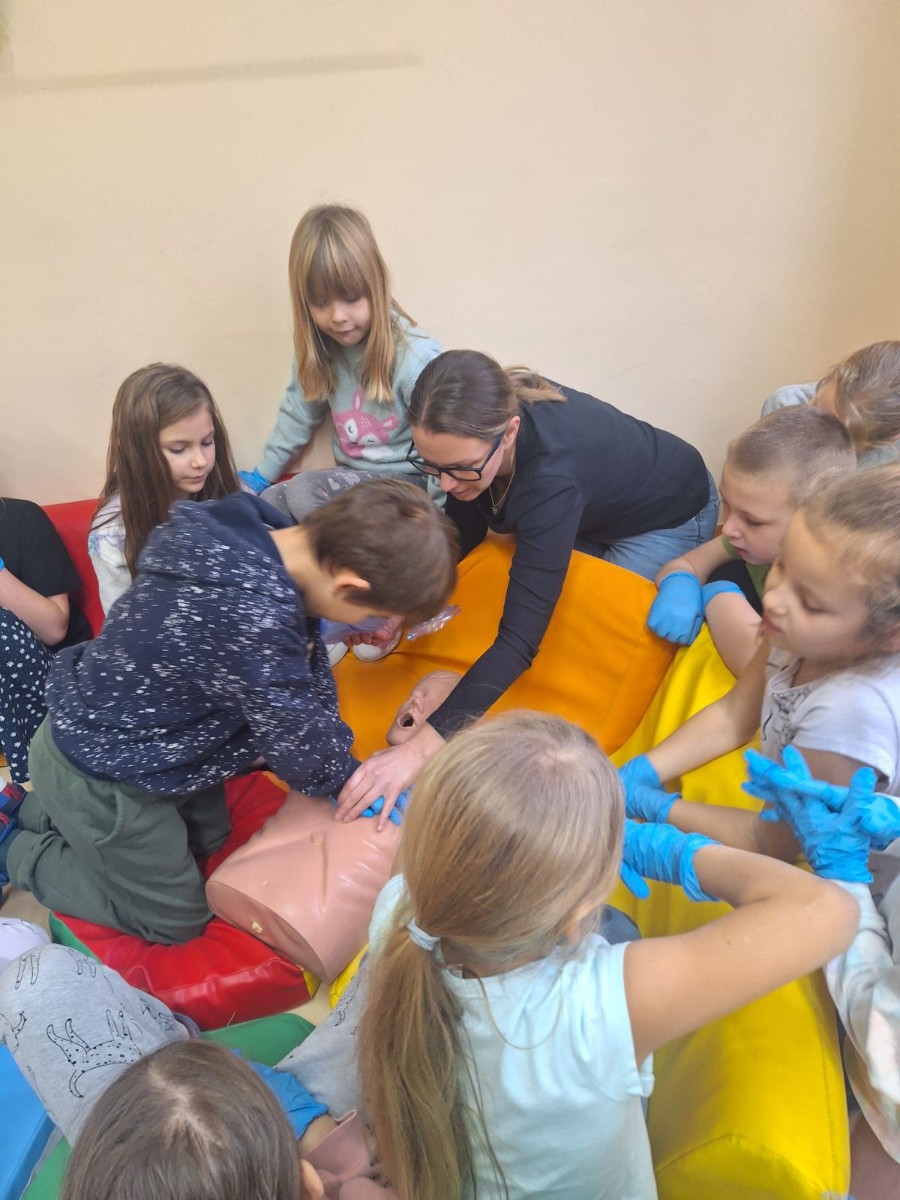 W poniedziałek 12 grudnia w naszej szkole odbyły się zajęcia z udzielania pierwszej pomocy przedmedycznej, w której wzięli udział uczniowie klasy I. Podczas zajęć dzieci mogły poczuć się jak mali ratownicy. Poznały procedury zachowania się w sytuacjach zagrożenia życia oraz obserwowały czynności ratownicze w czasie zasłabnięć,zranień,złamań. Wiele emocji wzbudził pokaz czynności z zakresu resuscytacji wykonany na fantomie. Dzieci mogły samodzielnie wykazać się praktyczną znajomością udzielania pierwszej pomocy. Zostały zapoznane ze sprzętem ratującym życie i utrwaliły znajomość numerów alarmowych.