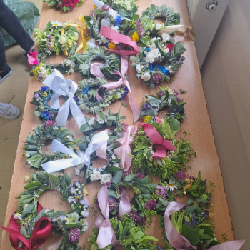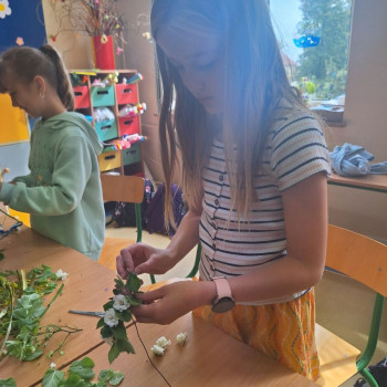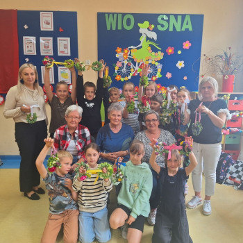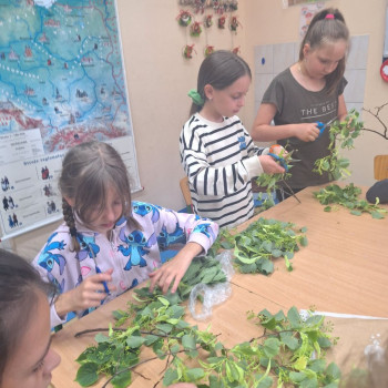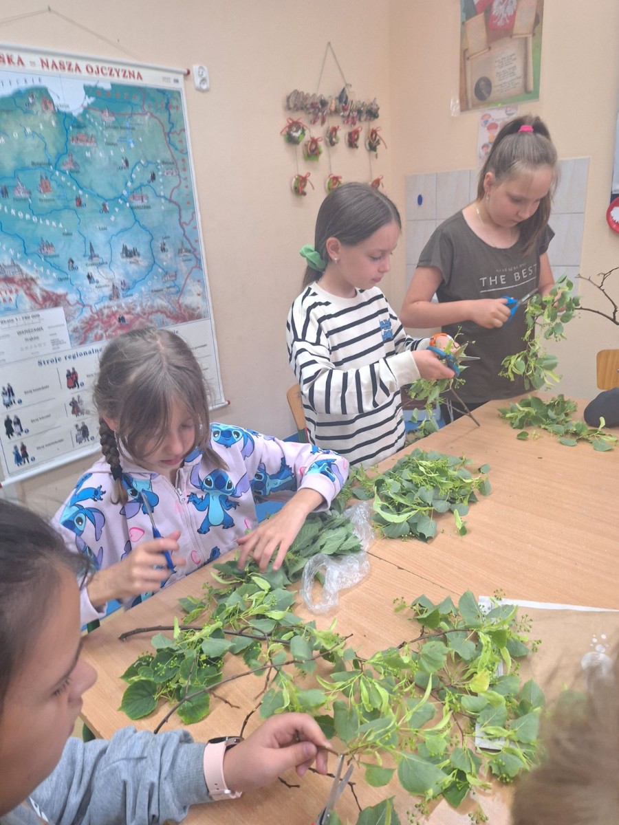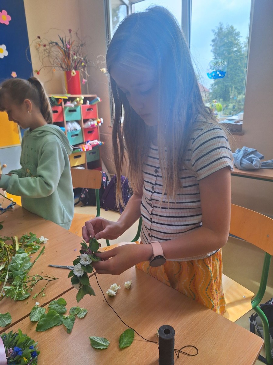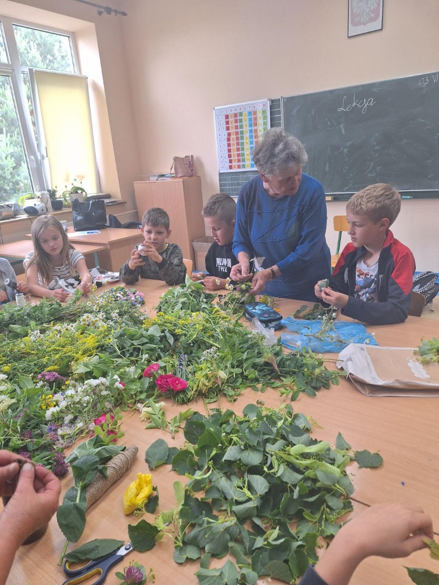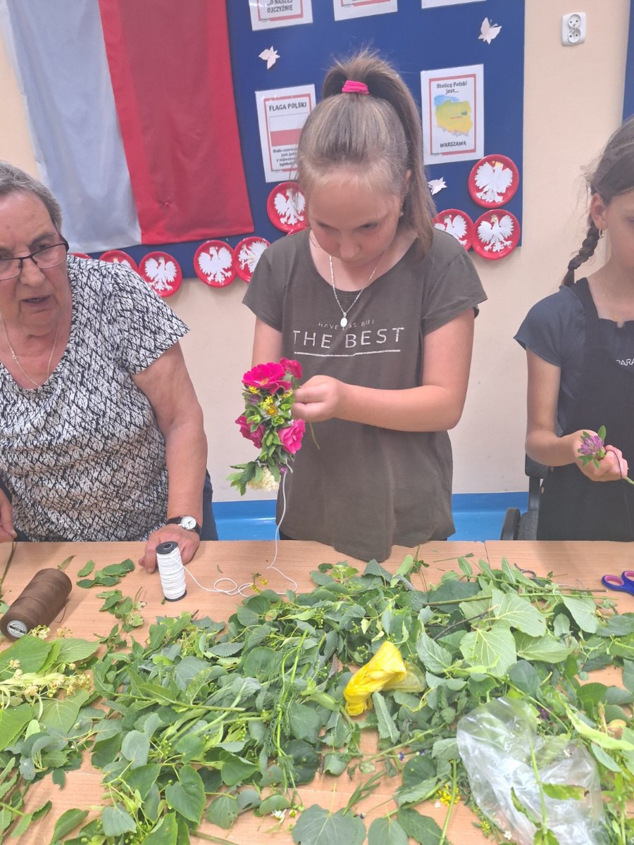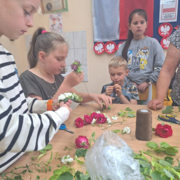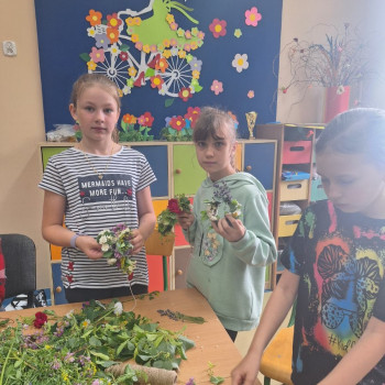 Coraz częściej mówi się o zwyczajach święcenia wianków na zakończenie Oktawy Bożego Ciała,ale mało kto zna jego znaczenie i symbolikę.Przed czym chroni poświęcony wianek i z jakich roślin powinien być wypleciony.Stąd pomysł na warsztaty wicia wianuszków, które odbyły się w ramach projektu,,Tradycje i zwyczaje ziemi mazowieckiej'' 03 czerwca bieżącego roku w naszej szkole pod bacznym okiem Pań z Koła Gospodyń Wiejskich z Augustówki.Uczniowie klasy trzeciej poznali zwyczaj tworzenia wianków oraz nauczyli się ich wyplatania.Barwne kompozycje zostaną poświęcone na zakończenie oktawy Bożego Ciała.