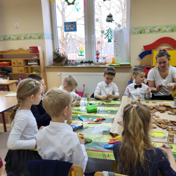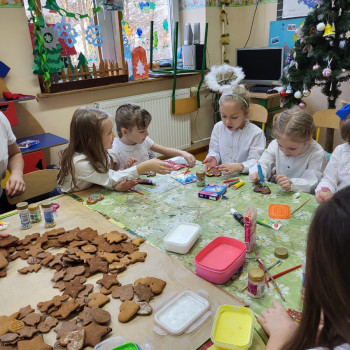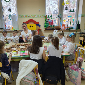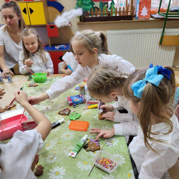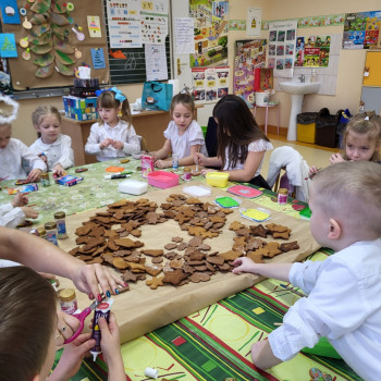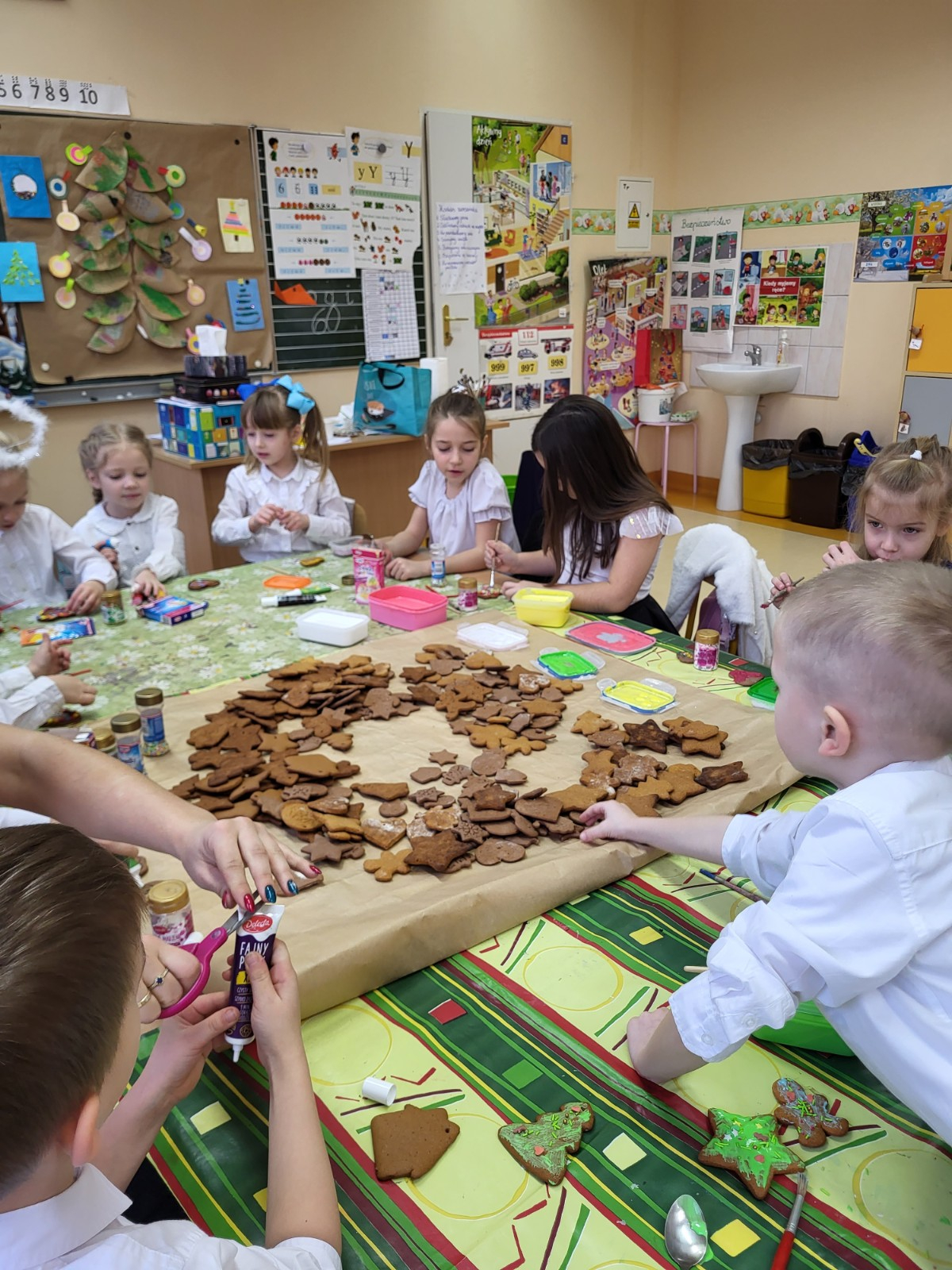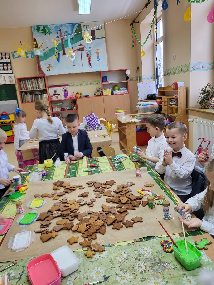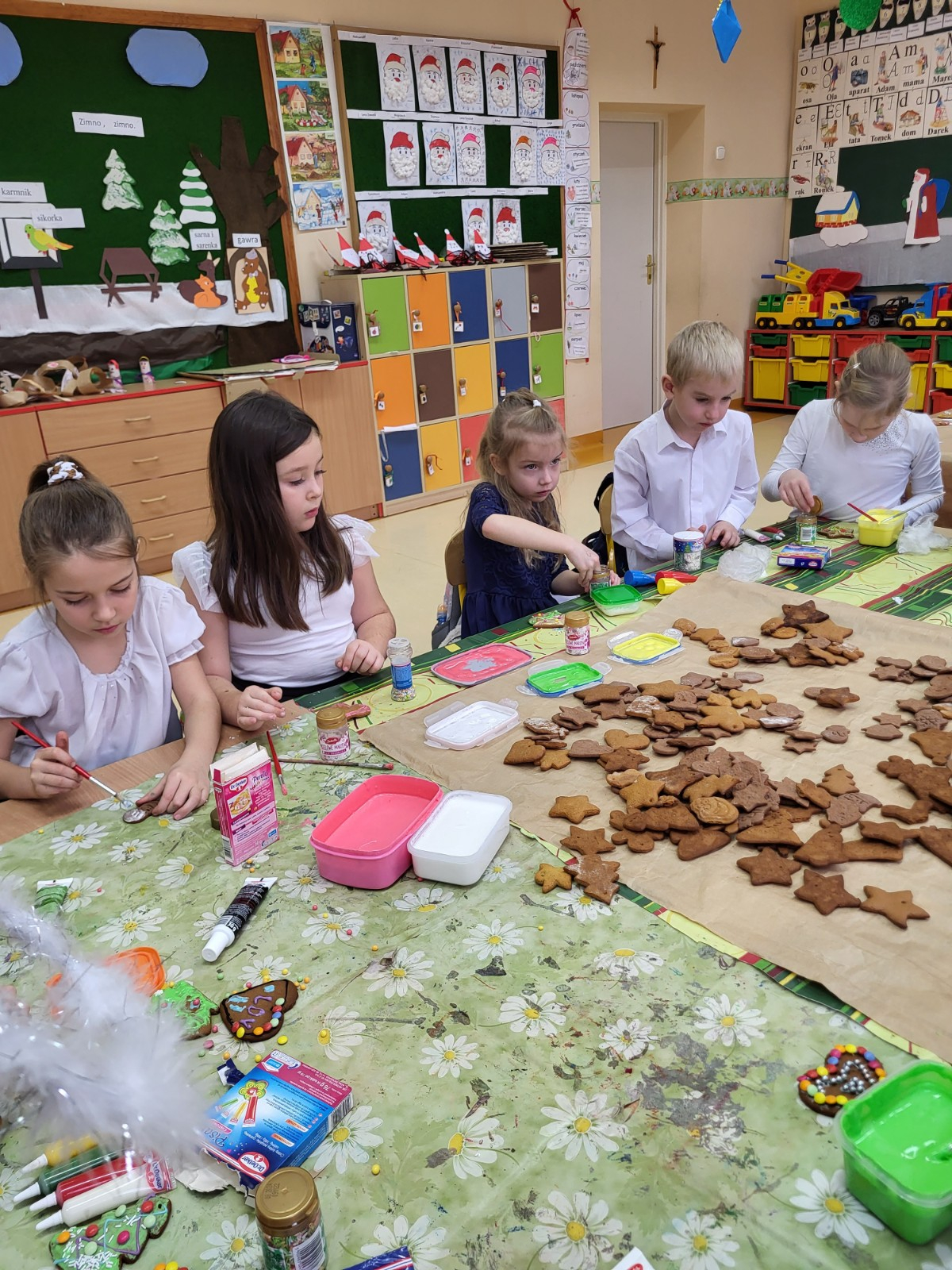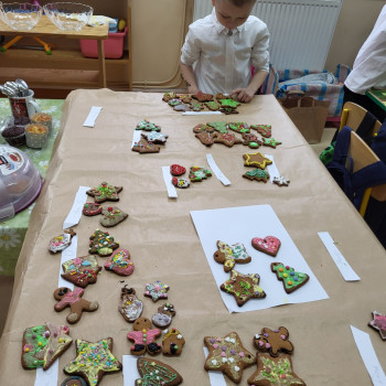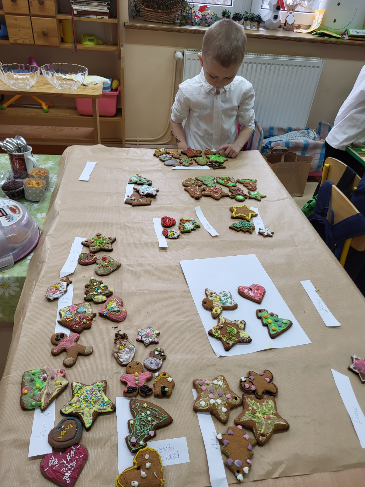 Rozpoczęliśmy od dekorowania pierniczków, które dla dzieci upiekli rodzice. Dzieci wykazały się dużą kreatywnością.