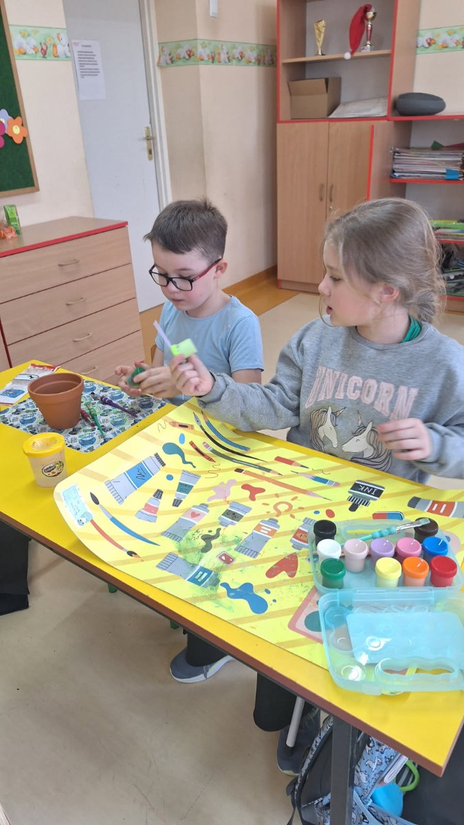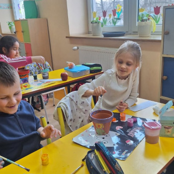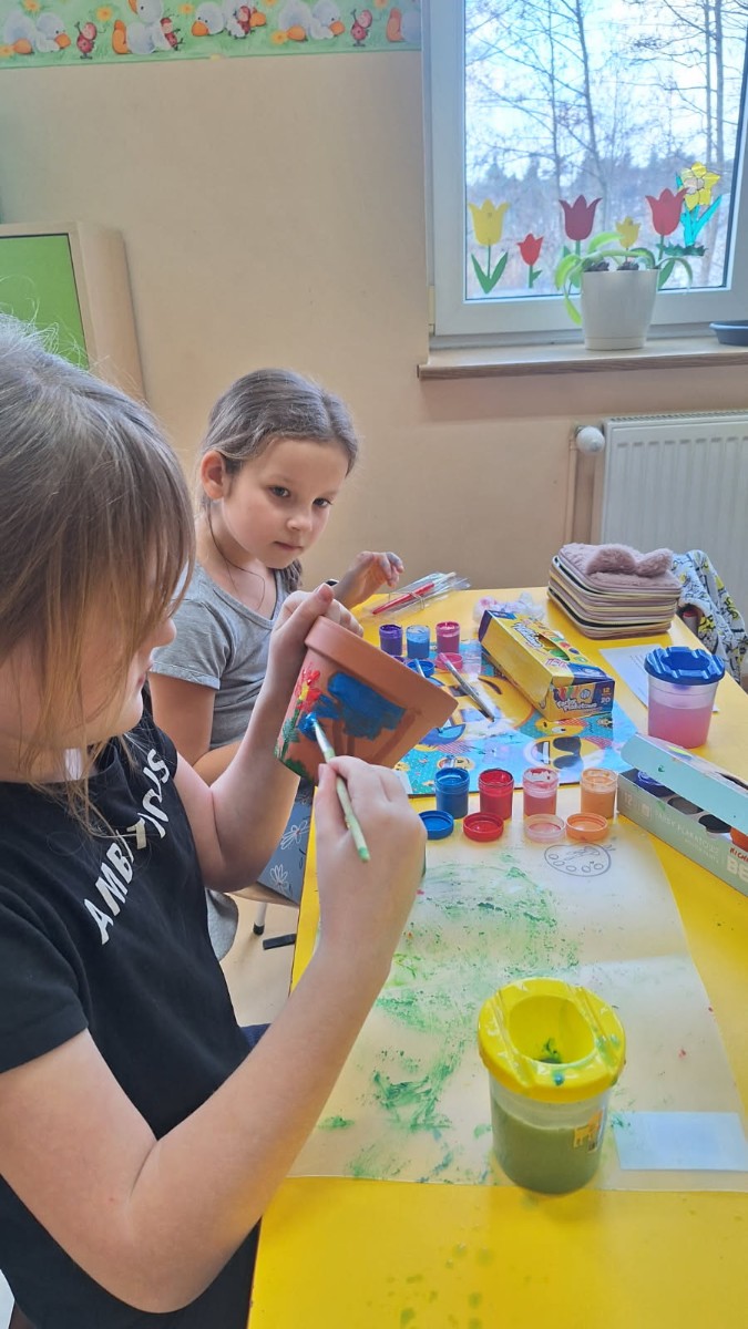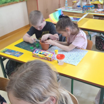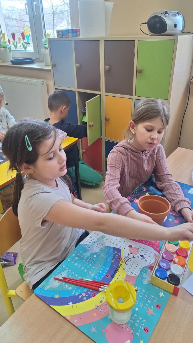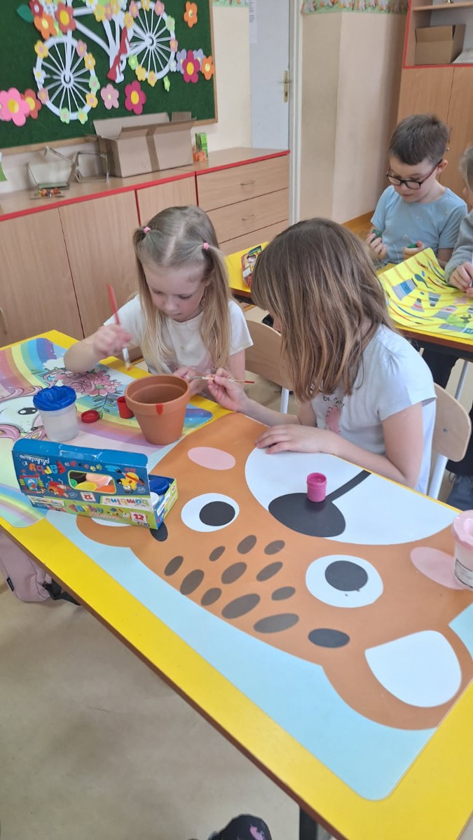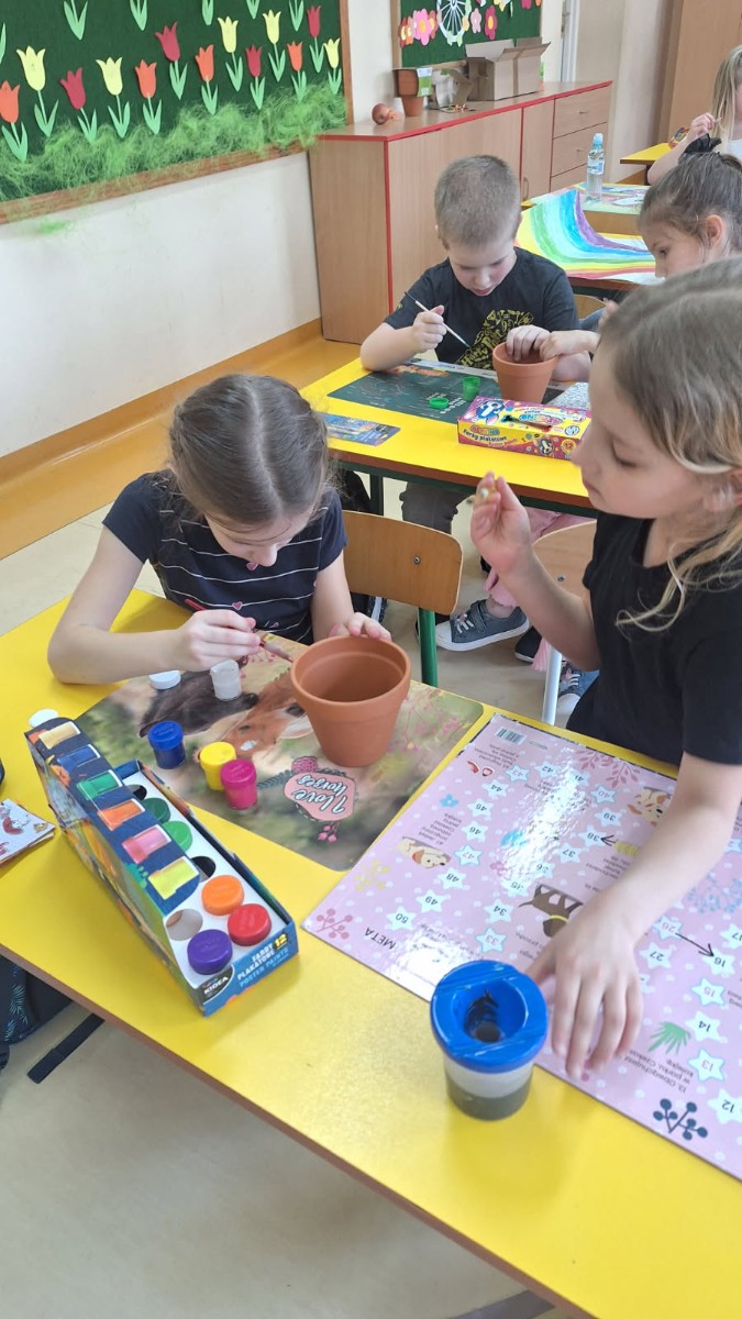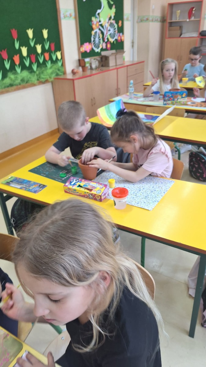 We wtorek 25 marca 2025 r. uczniowie klasy I wraz z wychowawczynią p.Danutą Wawer wzięli udział w akcji sadzenia kwiatów doniczkowych.Wszyscy podjęli się bardzo odpowiedzialnego zadania, zobowiązując się do codziennej pielęgnacji swoich roślinek w klasie.Pomysł bardzo spodobał się dzieciom,którzy z uśmiechem na twarzach oraz dużym zaangażowaniem najpierw pomalowali doniczki, a następnie zasadzili swoje roślinki.