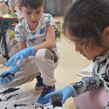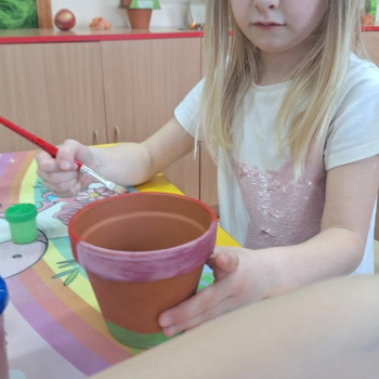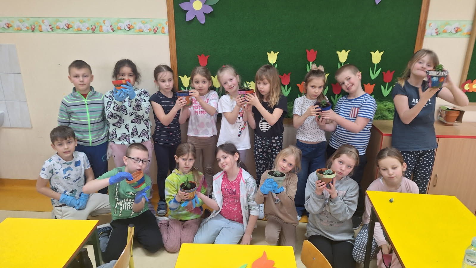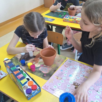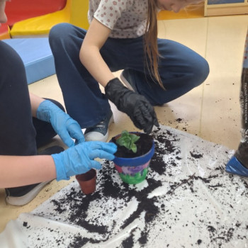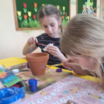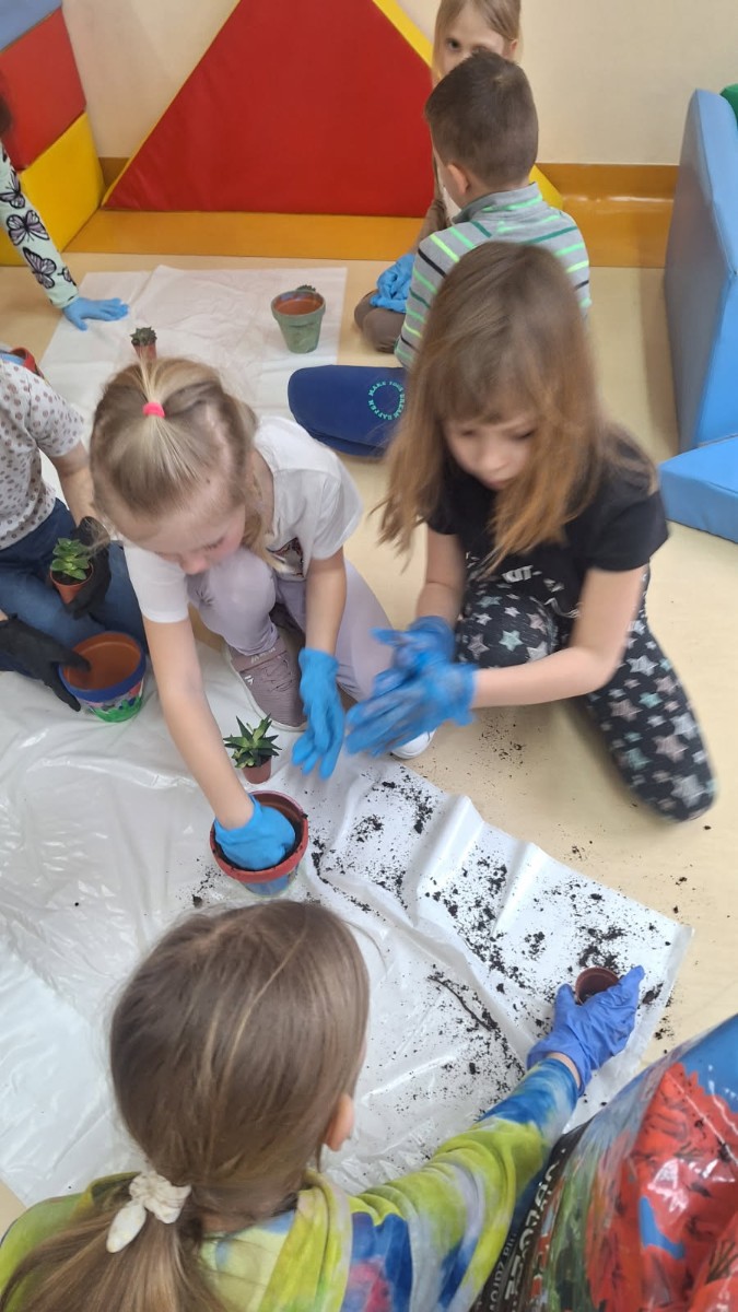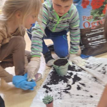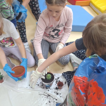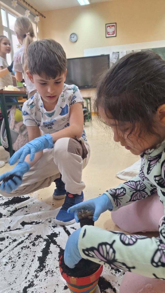Wiosenne sadzenie kwiatów doniczkowych w klasie 1.