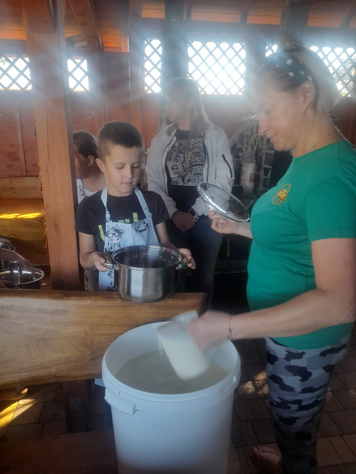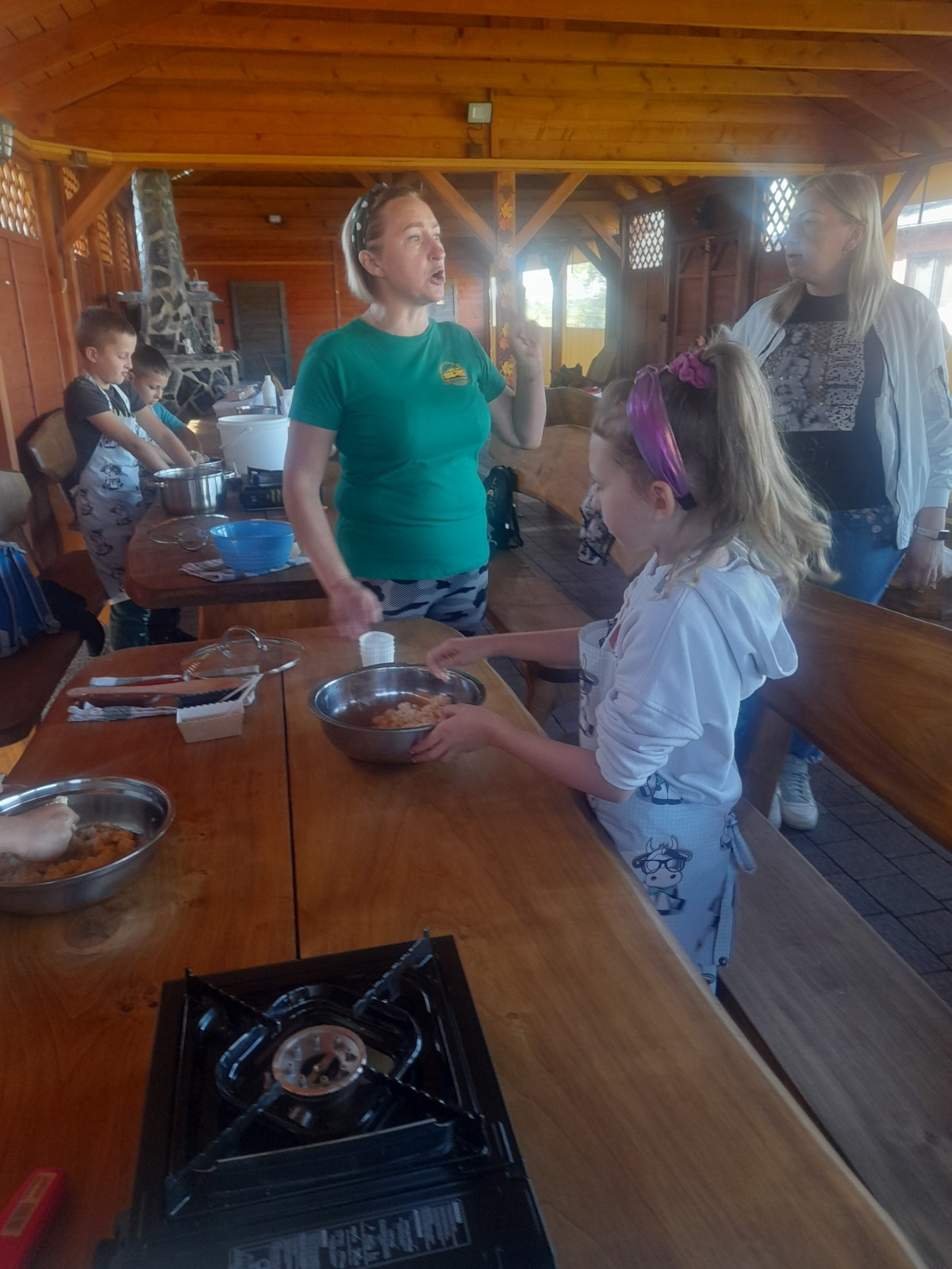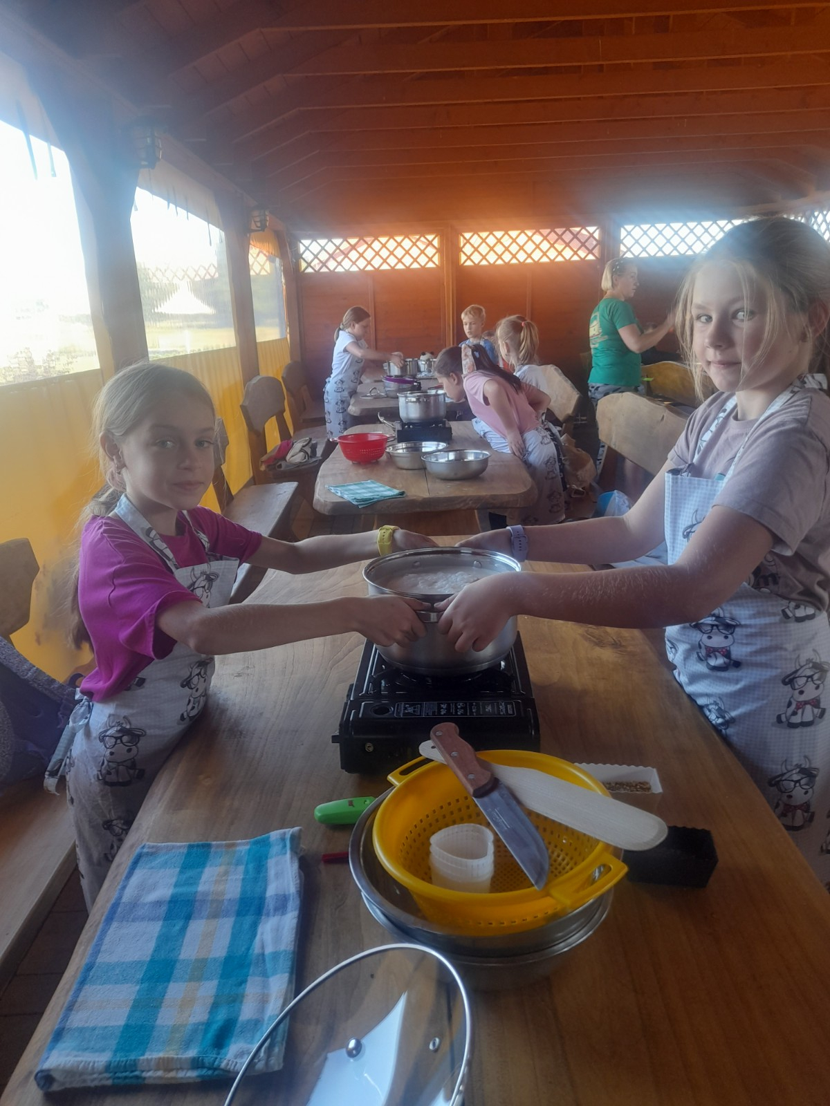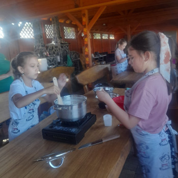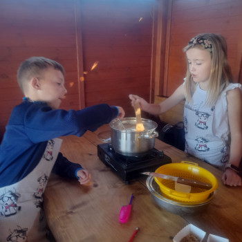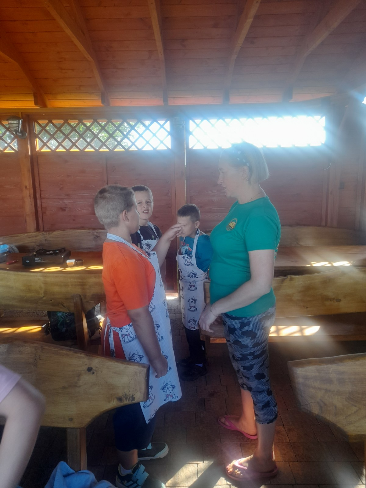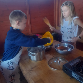 Uczniowie wraz z opiekunami zwiedzali malowniczo położone gospodarstwo agroturystyczne, które zamieszkuje wiele zwierząt. Gospodyni opowiedziała dzieciom o zwierzętach, o ich zwyczajach żywieniowych oraz rytuałach dnia codziennego. Po wyczerpujących wędrówkach dzieci brały udział w warsztatach serowarskich. Poznali proces produkcji sera krok po kroku. Sami też odkryli smak świeżego sera, zrobionego ręcznie w domowej kuchni. Każdy z uczestników mógł spróbować swoich sił w serowarstwie. Kończąc wycieczkę samodzielnie dzieci upiekły sobie kiełbaski na grilu.