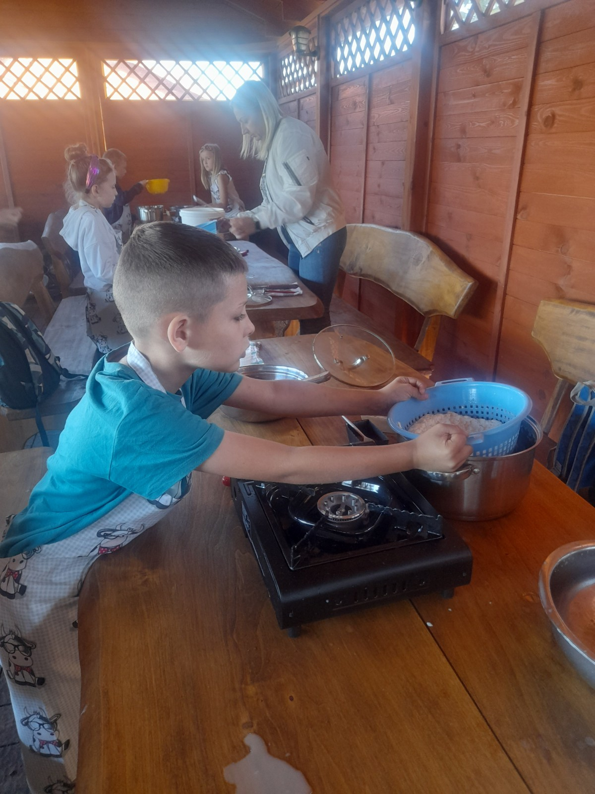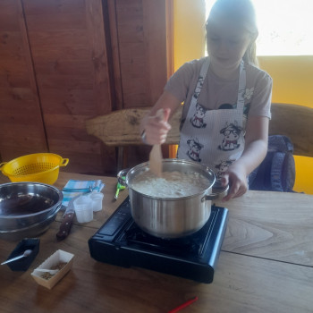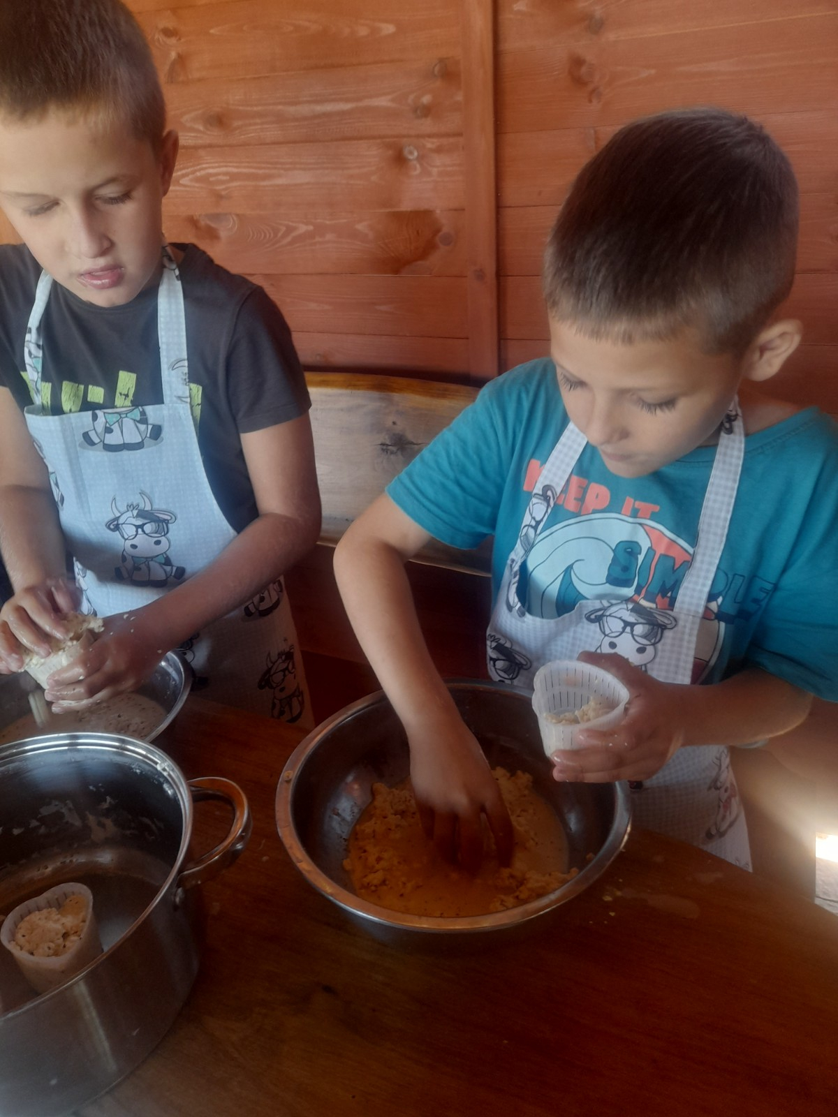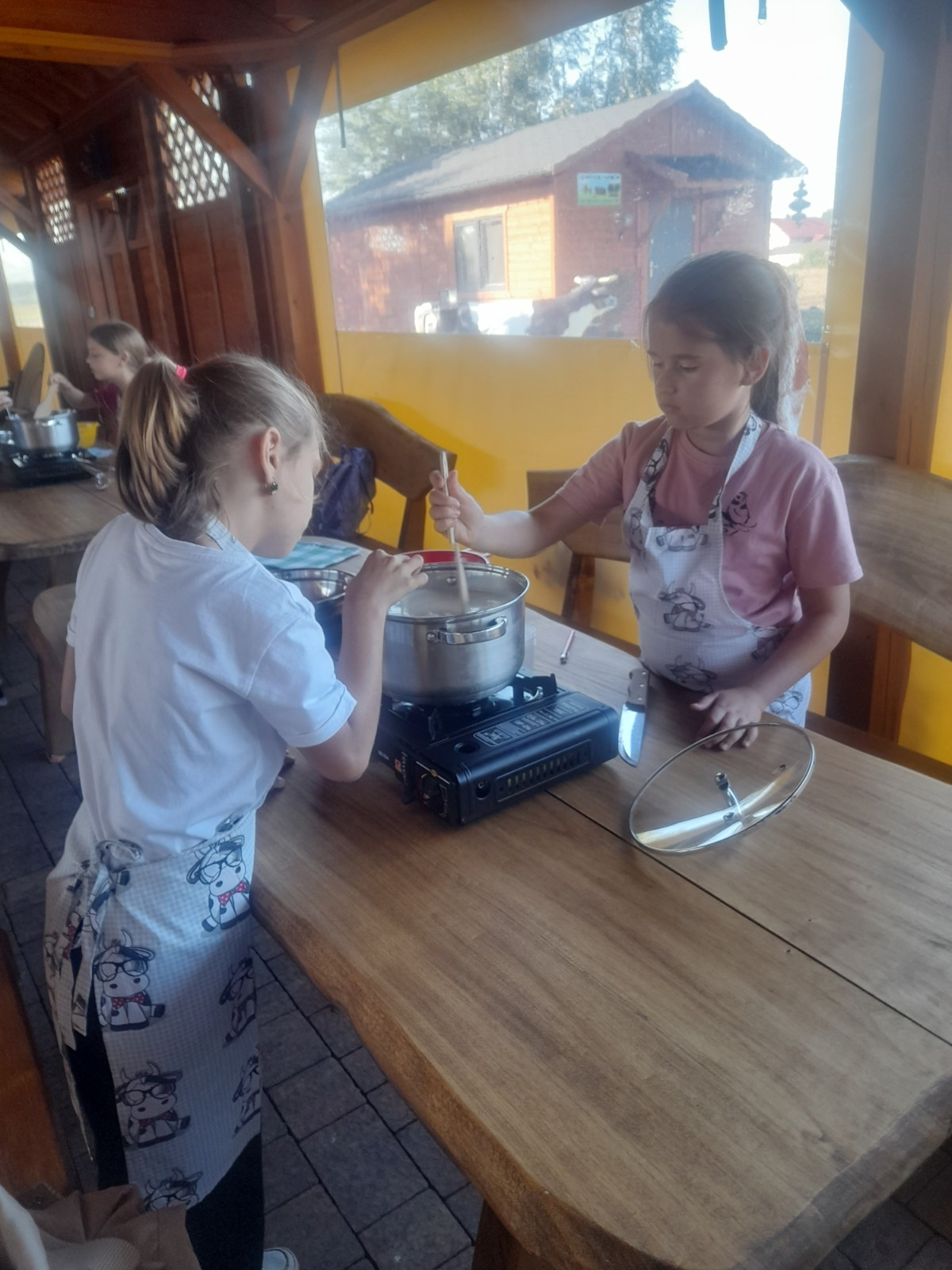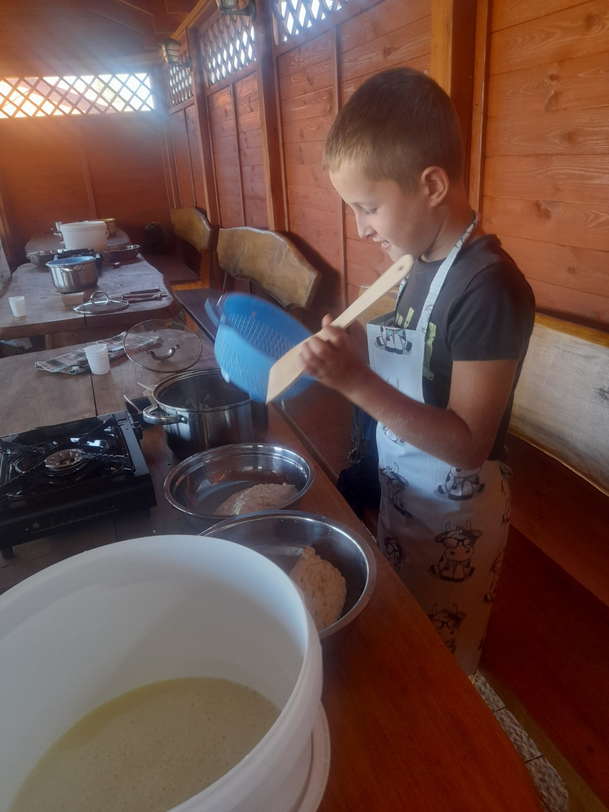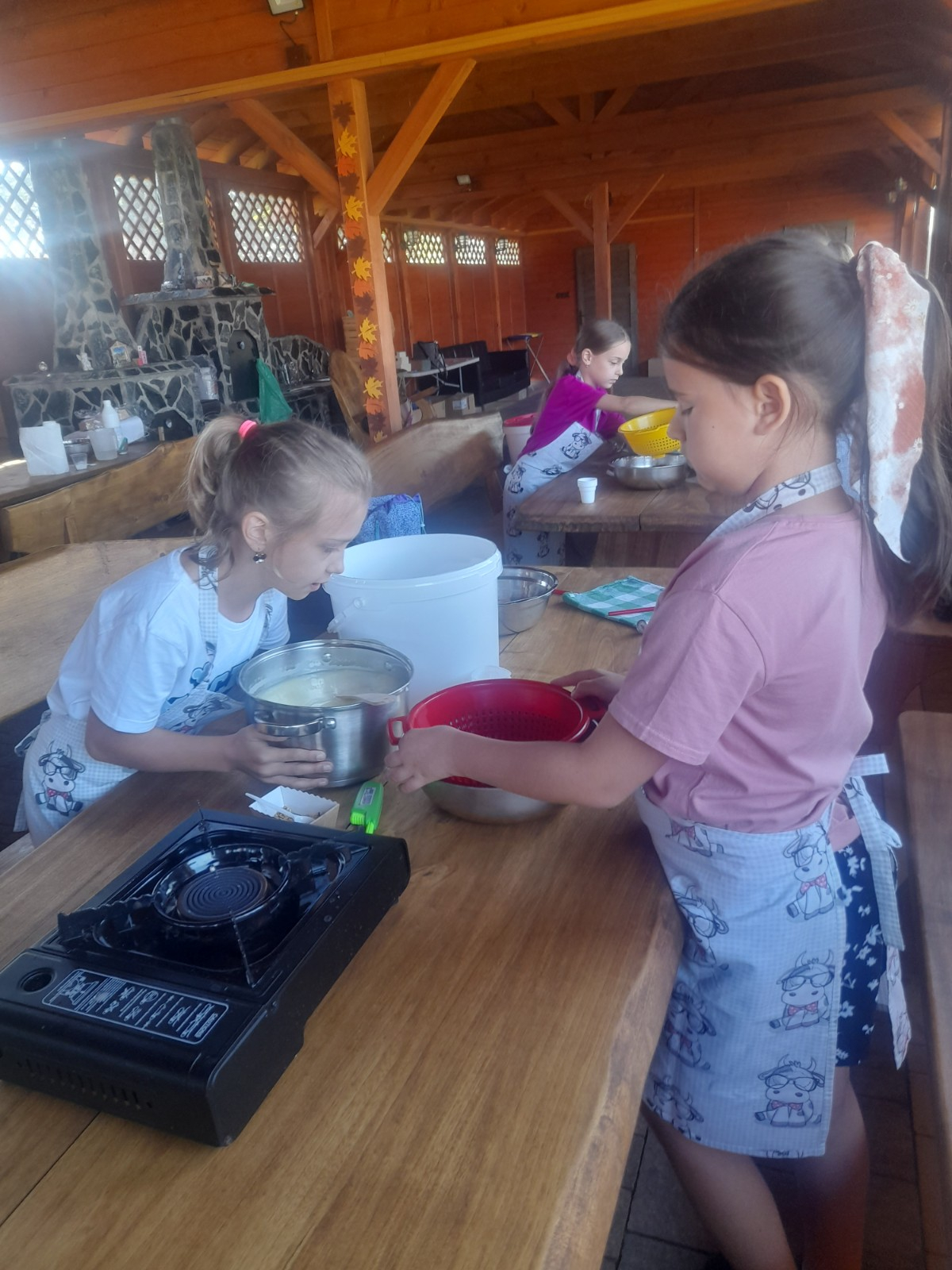 Uczniowie wraz z opiekunami zwiedzali malowniczo położone gospodarstwo agroturystyczne, które zamieszkuje wiele zwierząt. Gospodyni opowiedziała dzieciom o zwierzętach, o ich zwyczajach żywieniowych oraz rytuałach dnia codziennego. Po wyczerpujących wędrówkach dzieci brały udział w warsztatach serowarskich. Poznali proces produkcji sera krok po kroku. Sami też odkryli smak świeżego sera, zrobionego ręcznie w domowej kuchni. Każdy z uczestników mógł spróbować swoich sił w serowarstwie. Kończąc wycieczkę samodzielnie dzieci upiekły sobie kiełbaski na grilu.