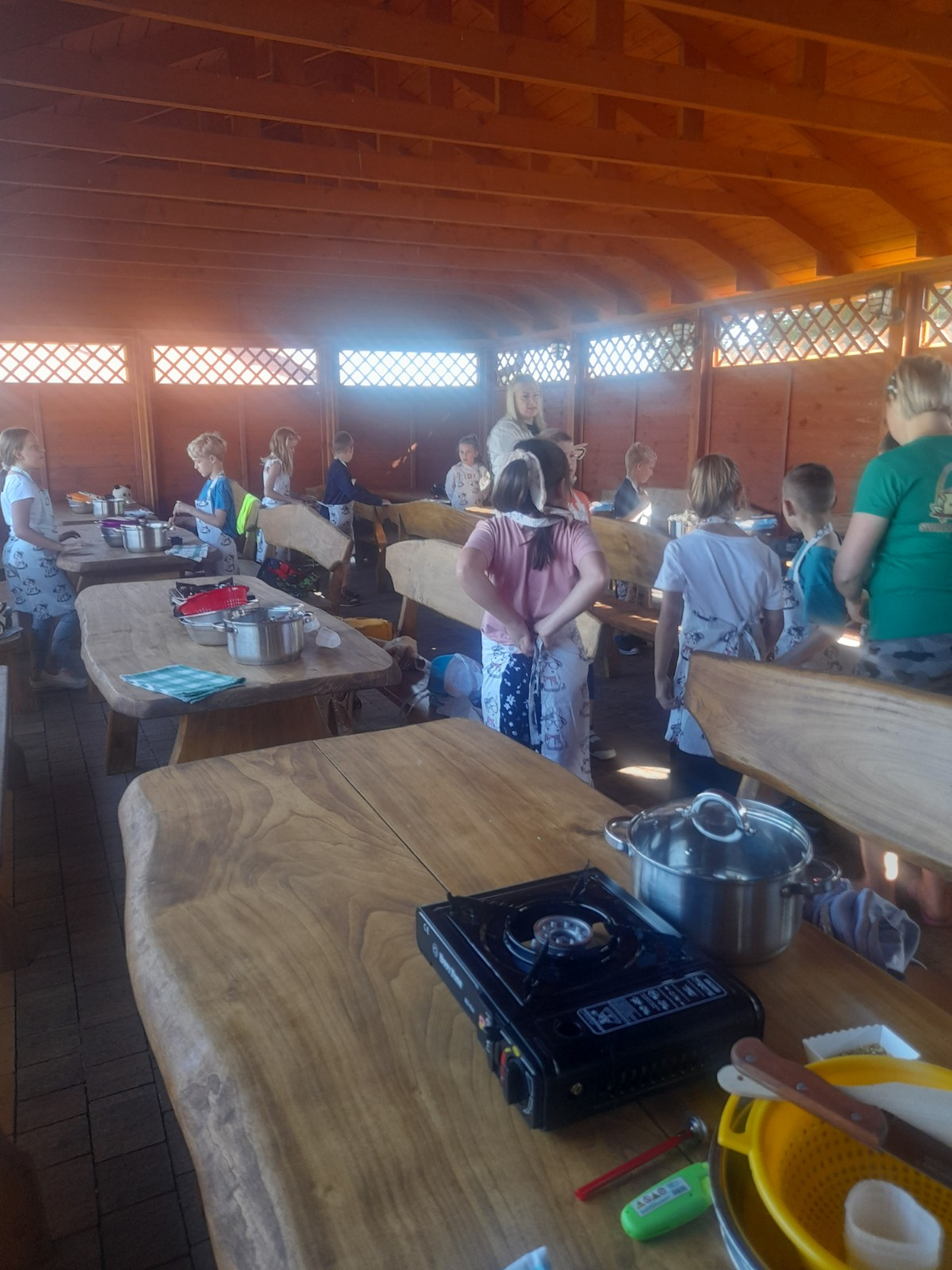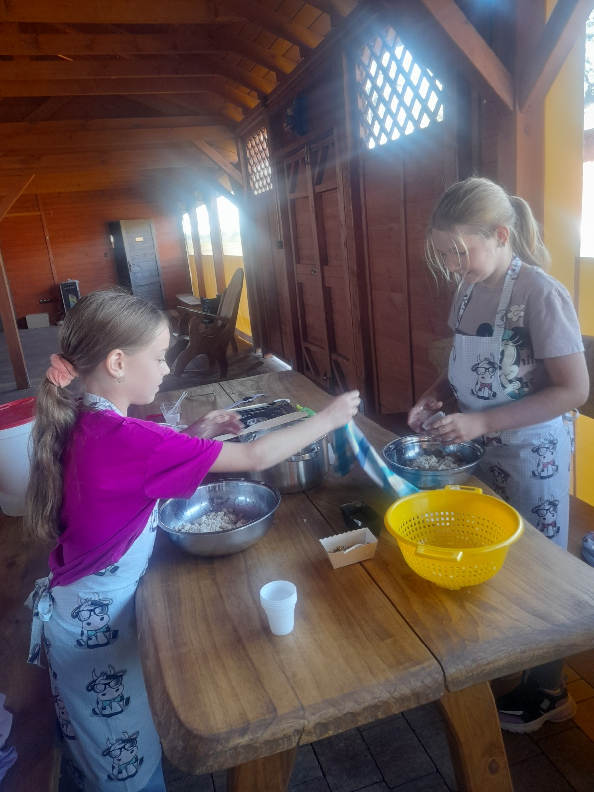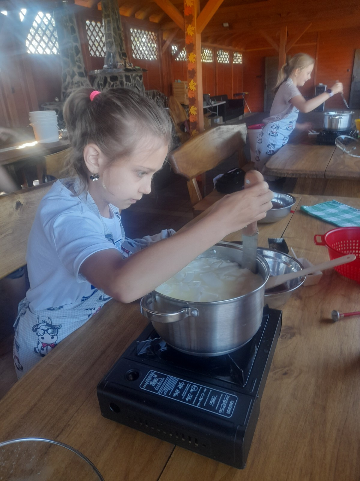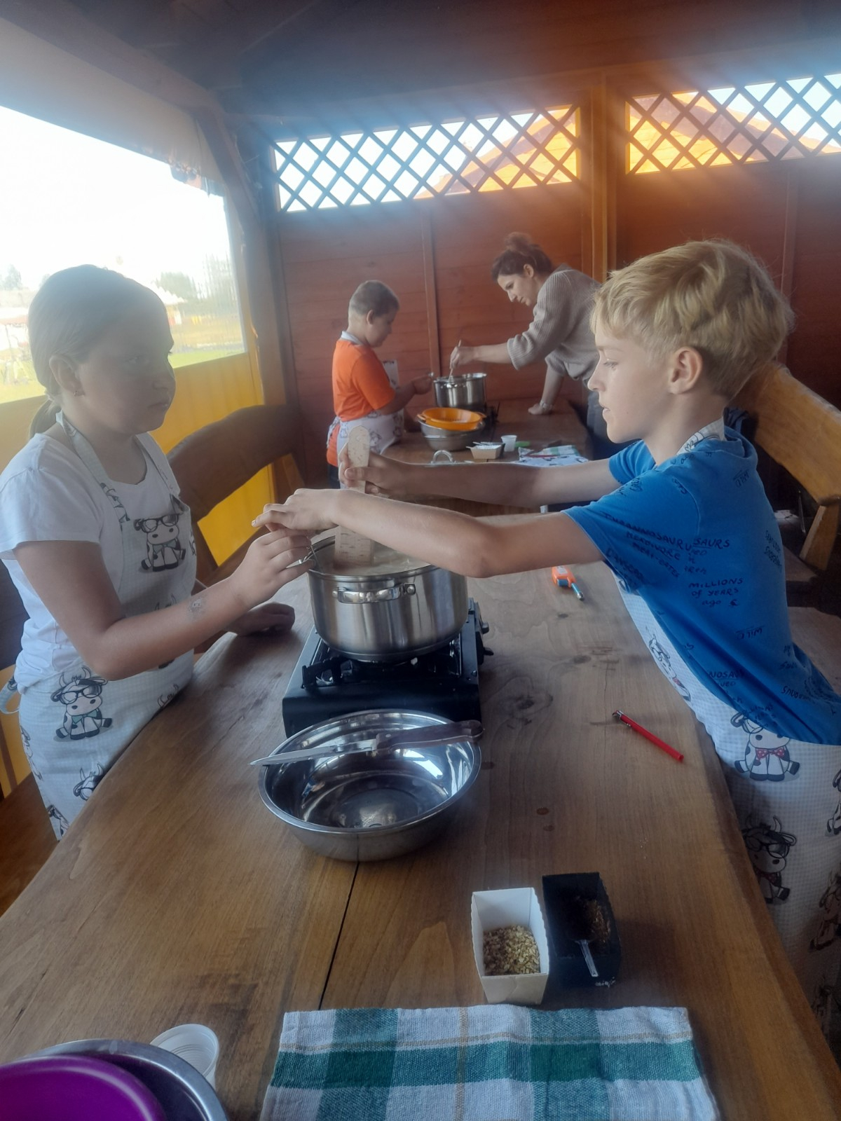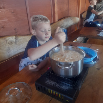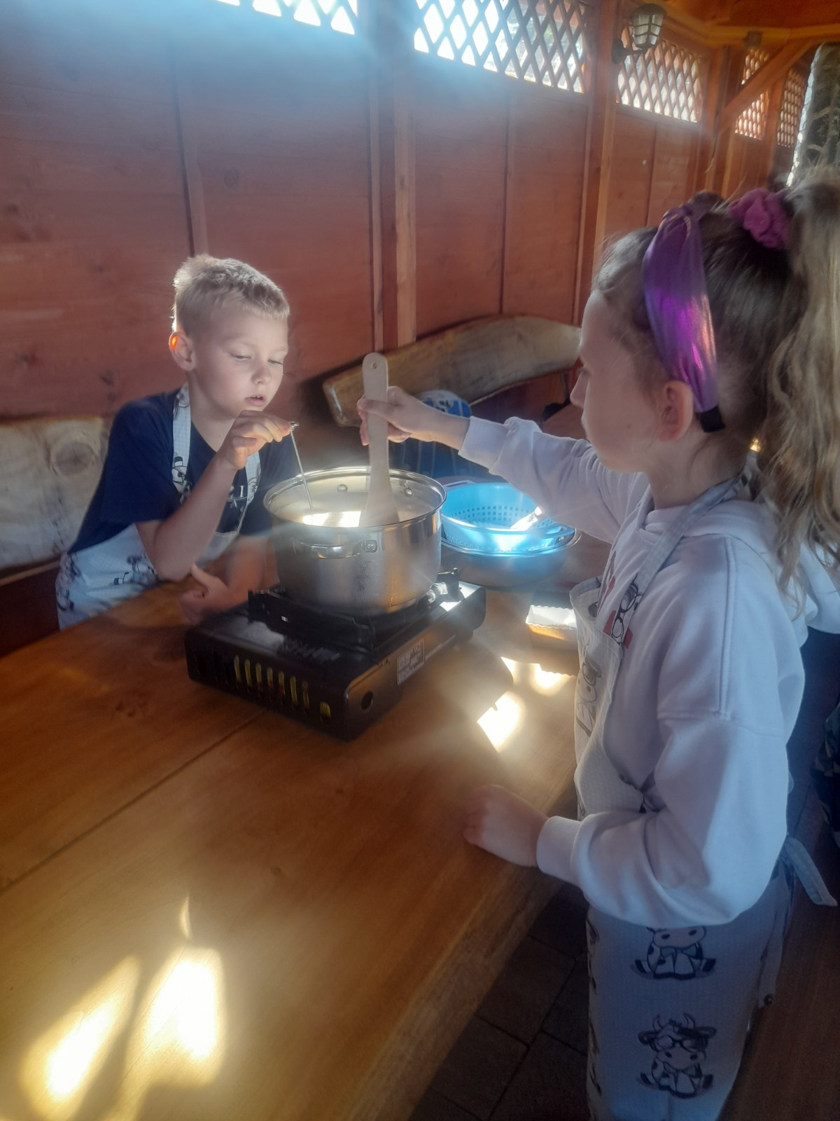 Uczniowie wraz z opiekunami zwiedzali malowniczo położone gospodarstwo agroturystyczne, które zamieszkuje wiele zwierząt. Gospodyni opowiedziała dzieciom o zwierzętach, o ich zwyczajach żywieniowych oraz rytuałach dnia codziennego. Po wyczerpujących wędrówkach dzieci brały udział w warsztatach serowarskich. Poznali proces produkcji sera krok po kroku. Sami też odkryli smak świeżego sera, zrobionego ręcznie w domowej kuchni. Każdy z uczestników mógł spróbować swoich sił w serowarstwie. Kończąc wycieczkę samodzielnie dzieci upiekły sobie kiełbaski na grilu.