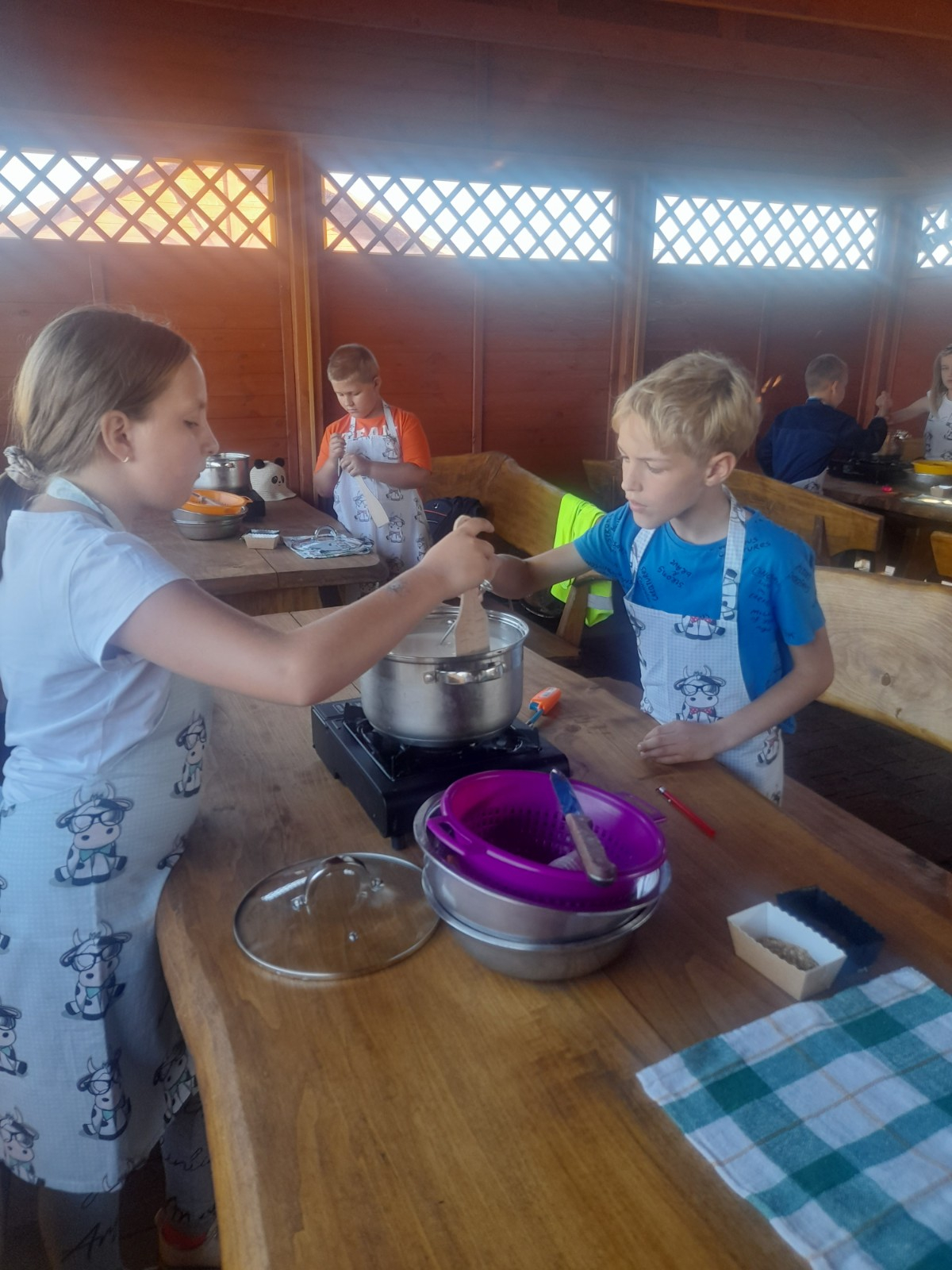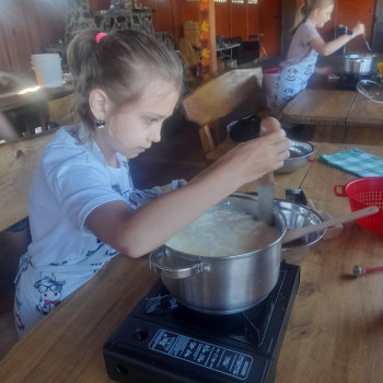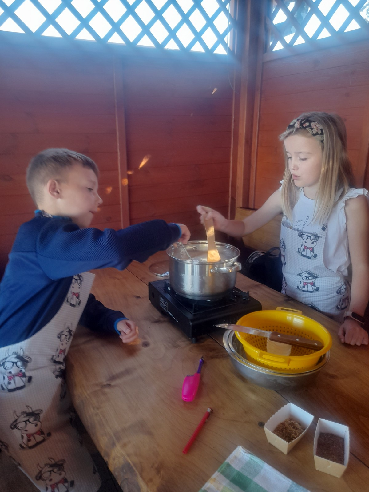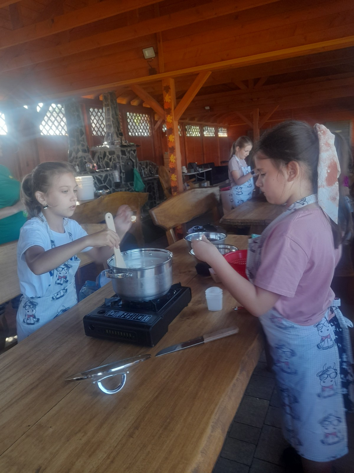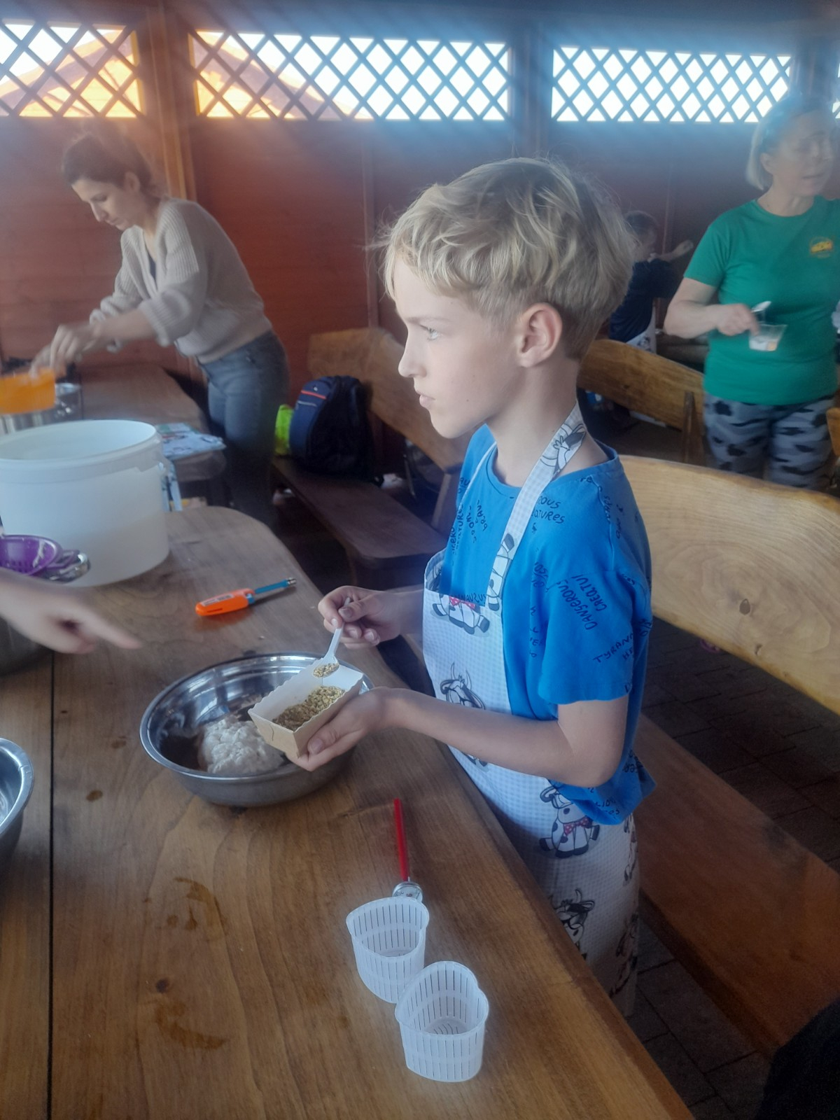 Uczniowie wraz z opiekunami zwiedzali malowniczo położone gospodarstwo agroturystyczne, które zamieszkuje wiele zwierząt. Gospodyni opowiedziała dzieciom o zwierzętach, o ich zwyczajach żywieniowych oraz rytuałach dnia codziennego. Po wyczerpujących wędrówkach dzieci brały udział w warsztatach serowarskich. Poznali proces produkcji sera krok po kroku. Sami też odkryli smak świeżego sera, zrobionego ręcznie w domowej kuchni. Każdy z uczestników mógł spróbować swoich sił w serowarstwie. Kończąc wycieczkę samodzielnie dzieci upiekły sobie kiełbaski na grilu.