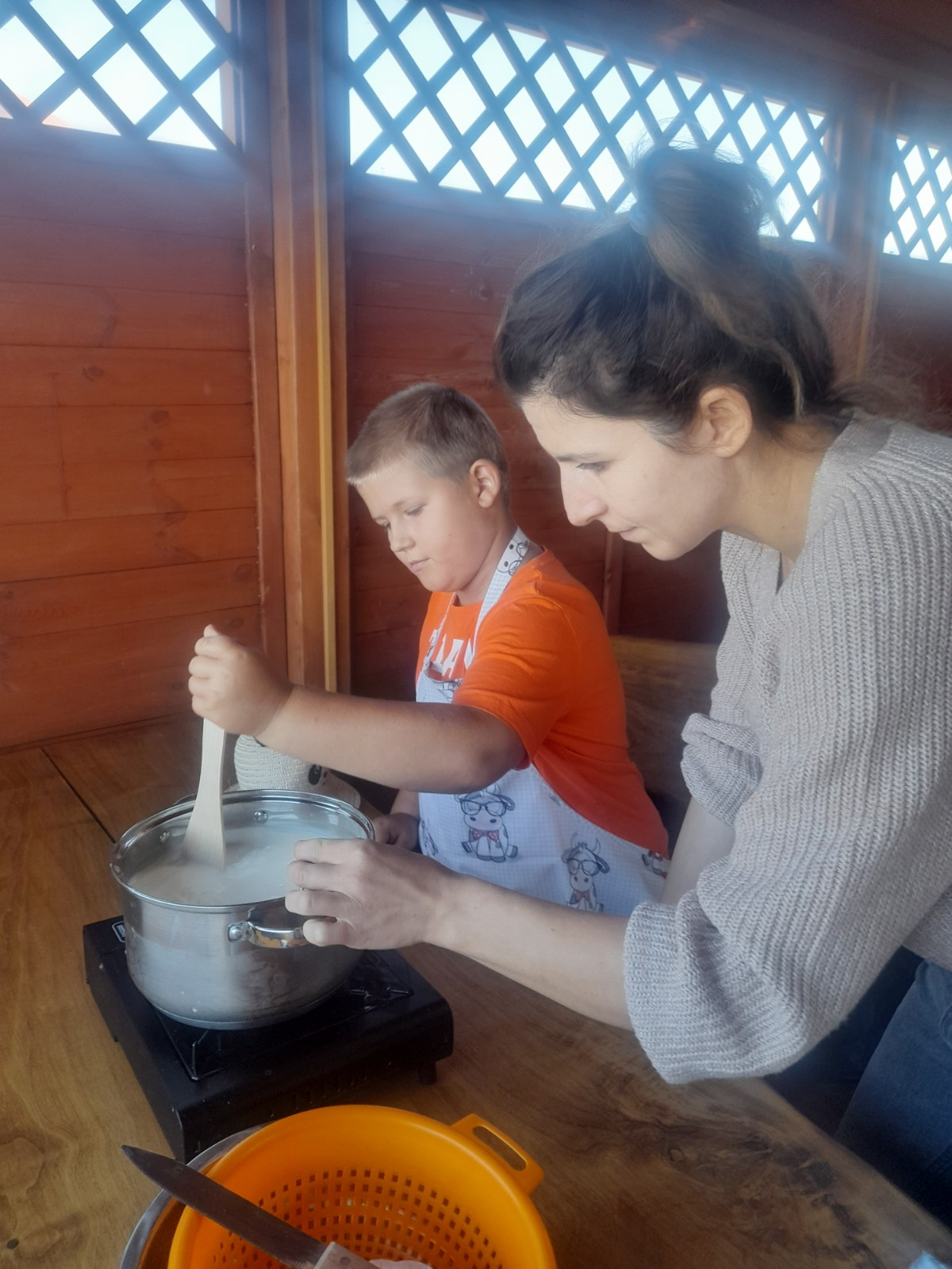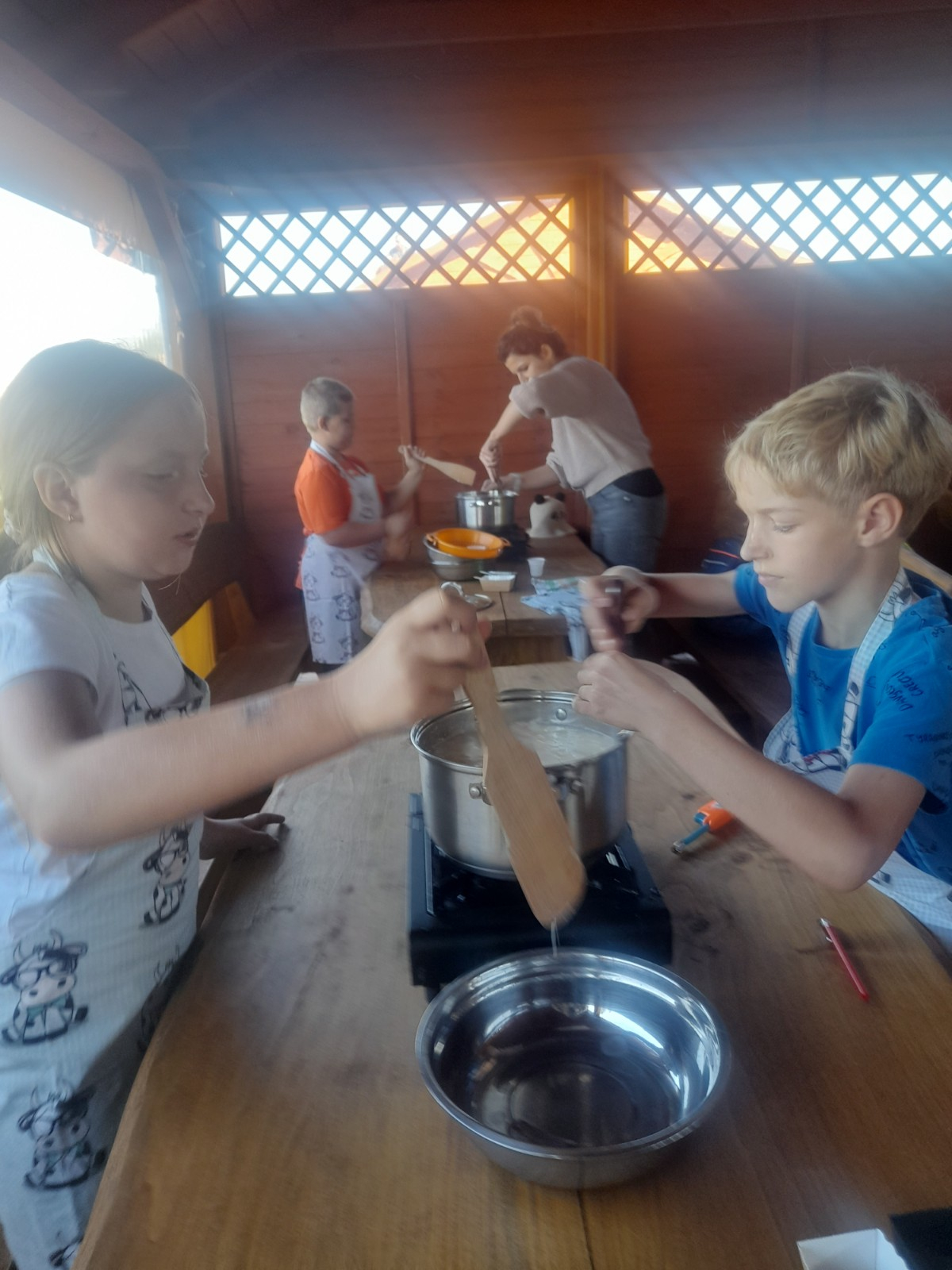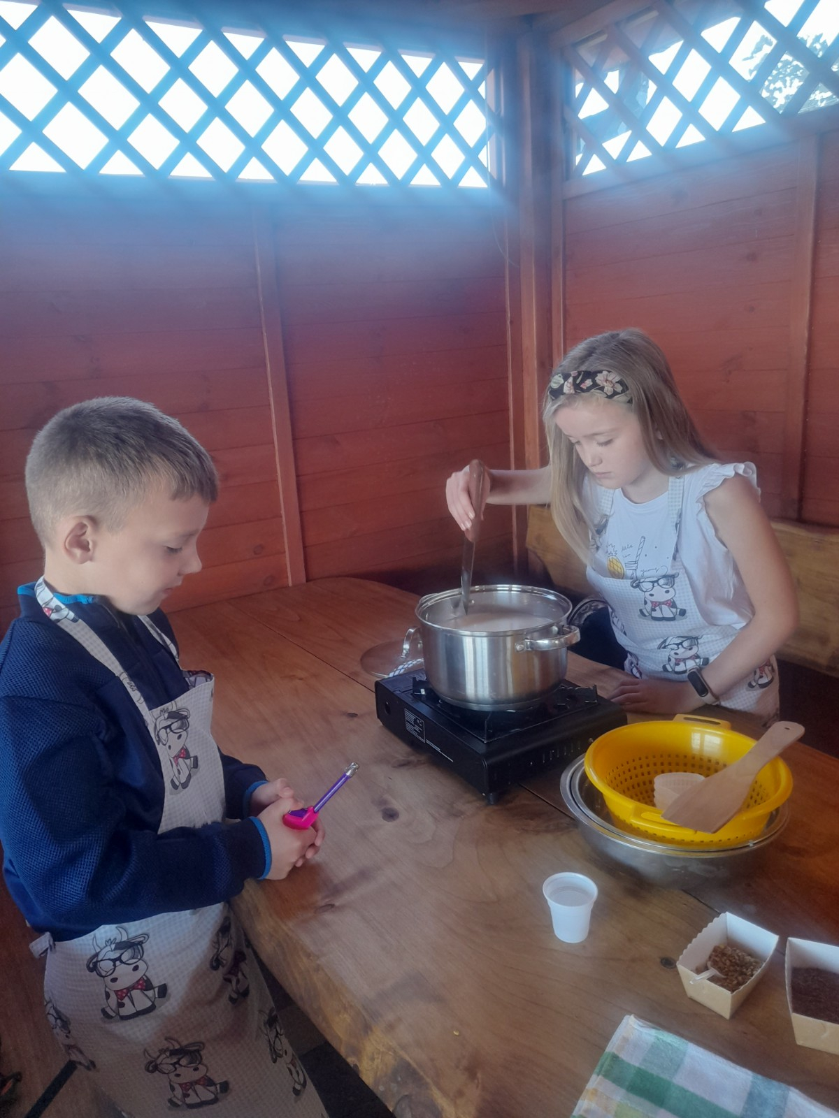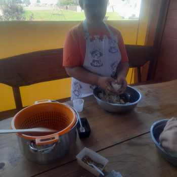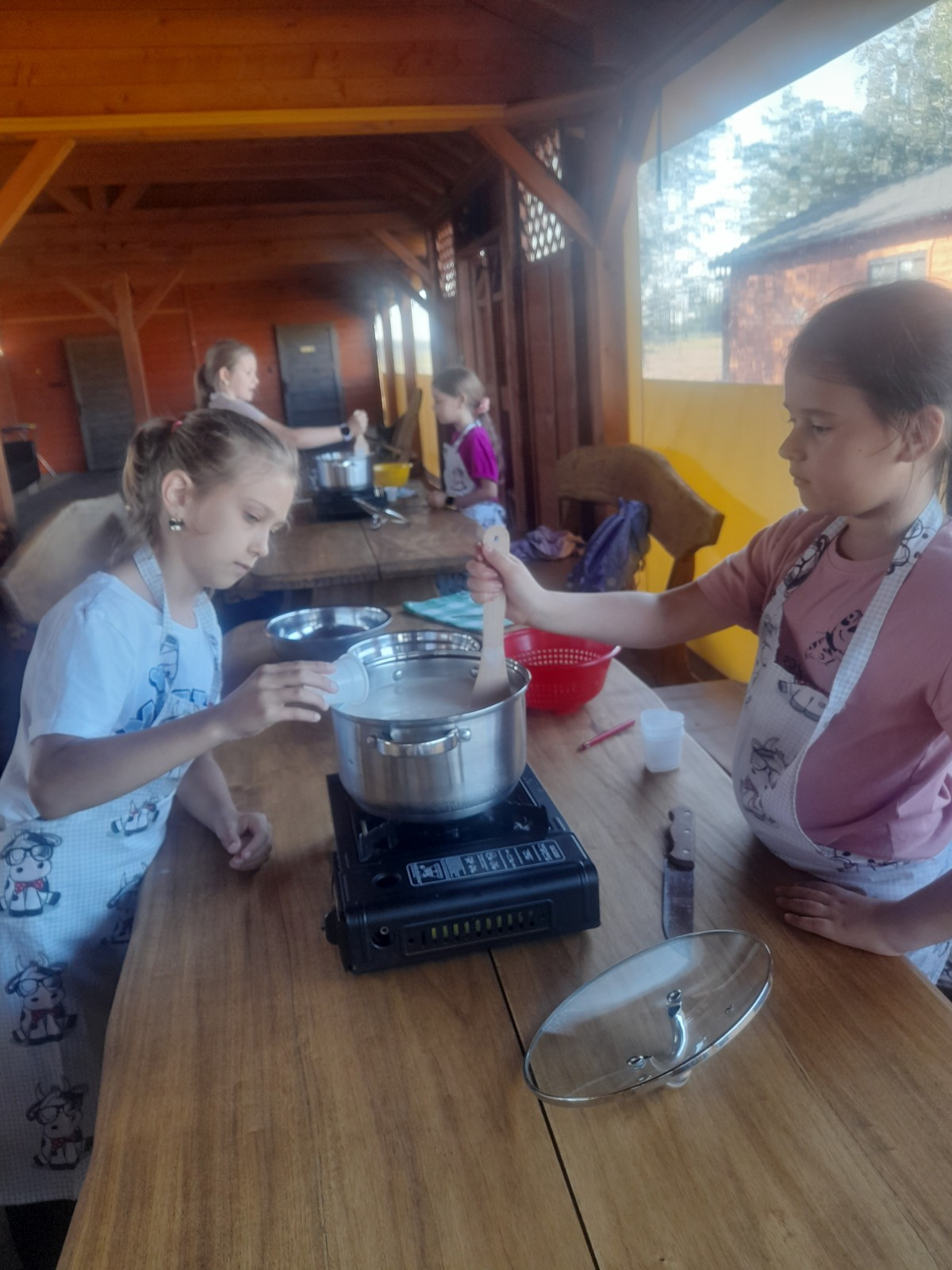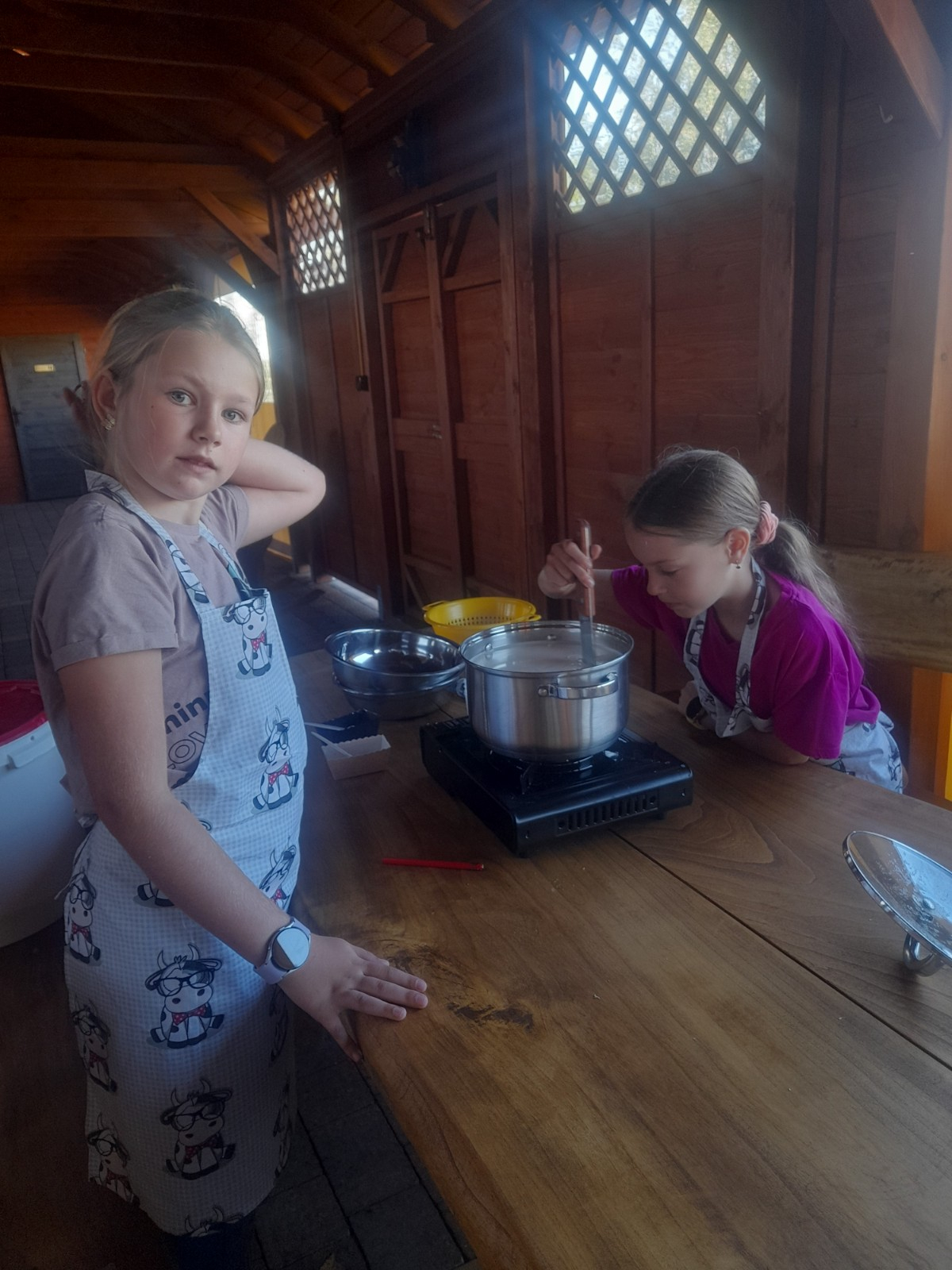 Uczniowie wraz z opiekunami zwiedzali malowniczo położone gospodarstwo agroturystyczne, które zamieszkuje wiele zwierząt. Gospodyni opowiedziała dzieciom o zwierzętach, o ich zwyczajach żywieniowych oraz rytuałach dnia codziennego. Po wyczerpujących wędrówkach dzieci brały udział w warsztatach serowarskich. Poznali proces produkcji sera krok po kroku. Sami też odkryli smak świeżego sera, zrobionego ręcznie w domowej kuchni. Każdy z uczestników mógł spróbować swoich sił w serowarstwie. Kończąc wycieczkę samodzielnie dzieci upiekły sobie kiełbaski na grilu.