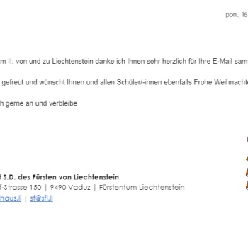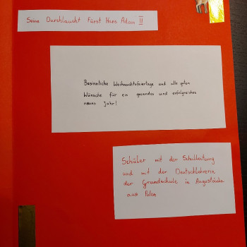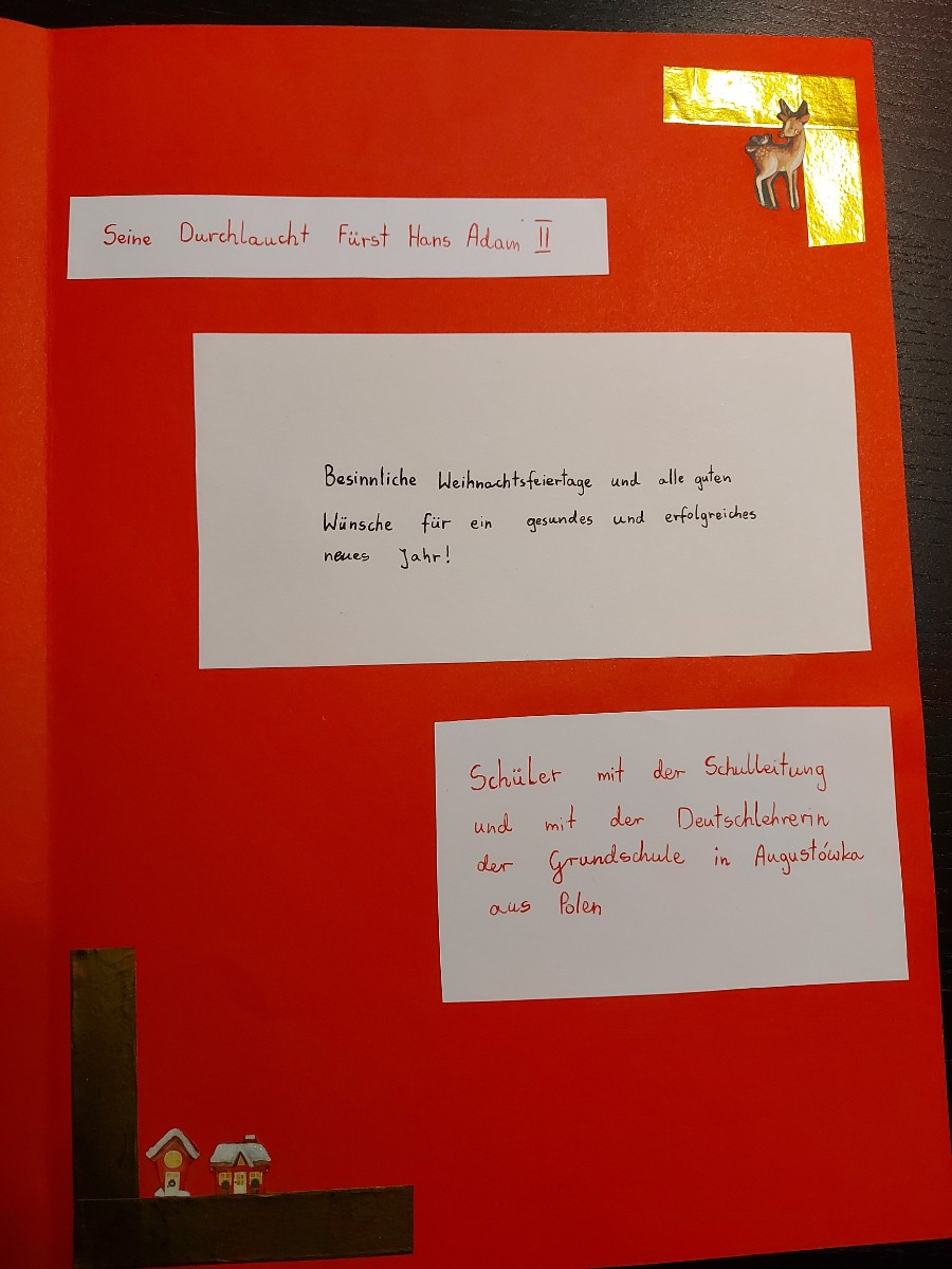 Stworzone przez Uczniów kartki wysłaliśmy do Szkoły Podstawowej im. Orła Białego w Michałówce, a dwie powędrowały do Księcia Liechtensteinu Jana Adama II.