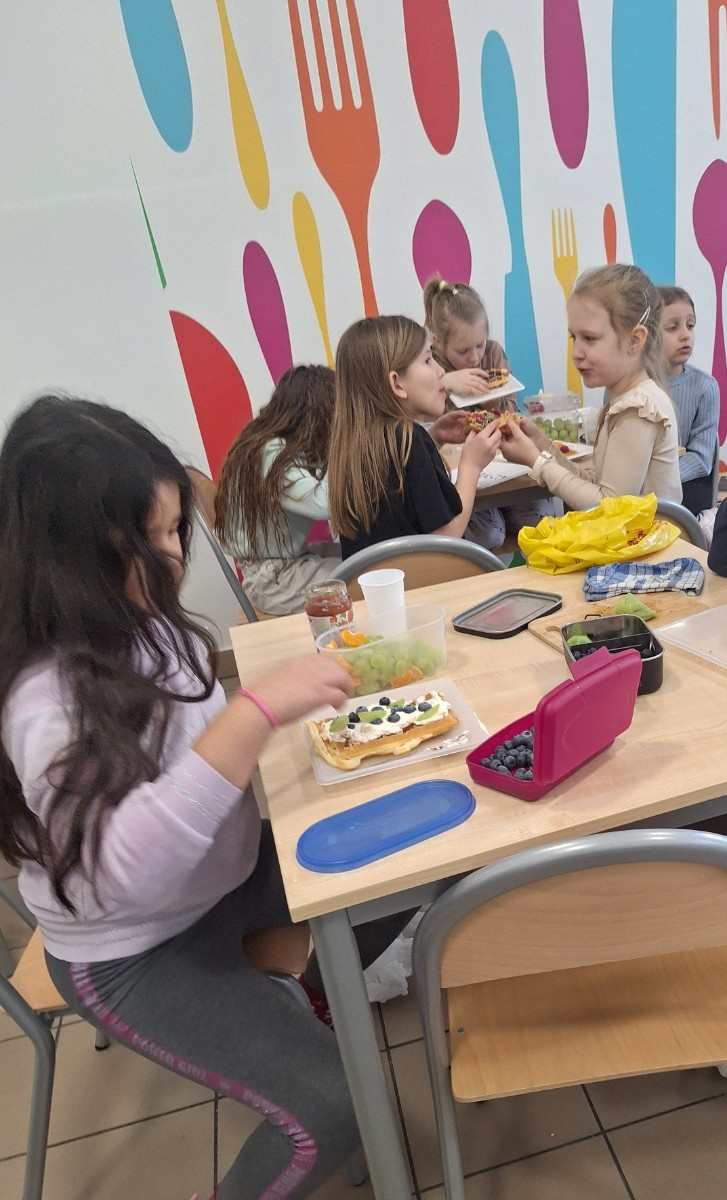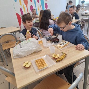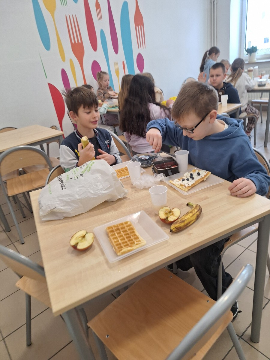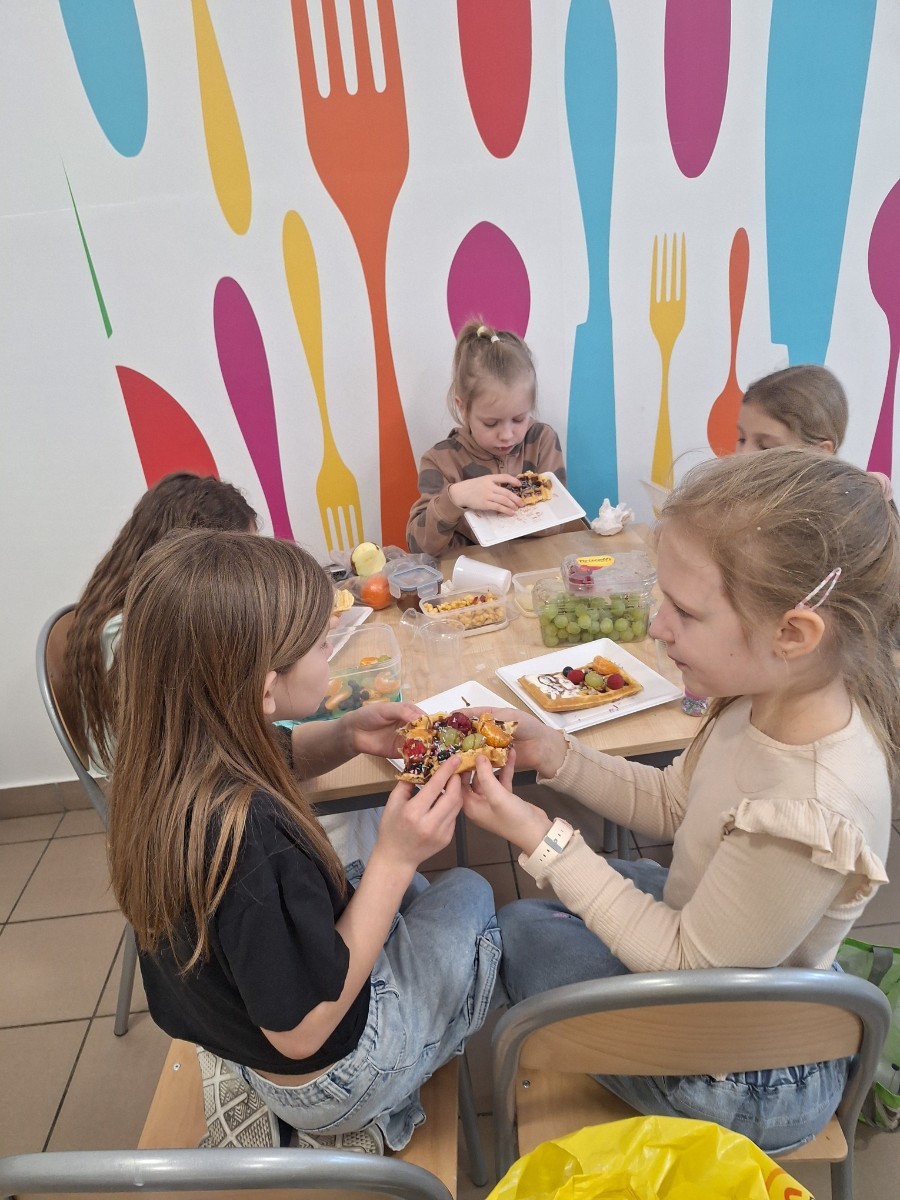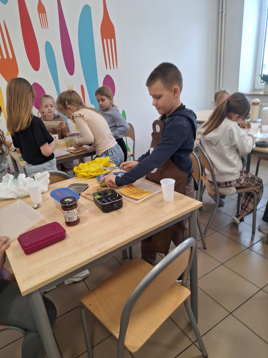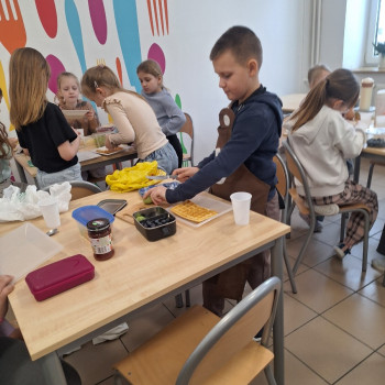We wtorek 17 lutego uczniowie klasy 2 mieli okazję rozwinąć swoje umiejętności kulinarne.Dzieci pod kierunkiem pani z wielkim zapałem odmierzały składniki i przygotowały ciasto na gofry.Kiedy wszystko było gotowe uczniowie przystąpili do pieczenia.Podczas zajęć dzieci poznały zasady bezpiecznego korzystania ze sprzętu kuchennego.Omówione zostały zasady higieny podczas przygotowania posiłków.Zajęcia okazały się nie tylko świetną zabawą, ale także cenną lekcją kulinarnej samodzielności.