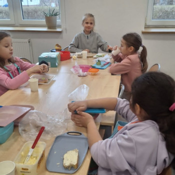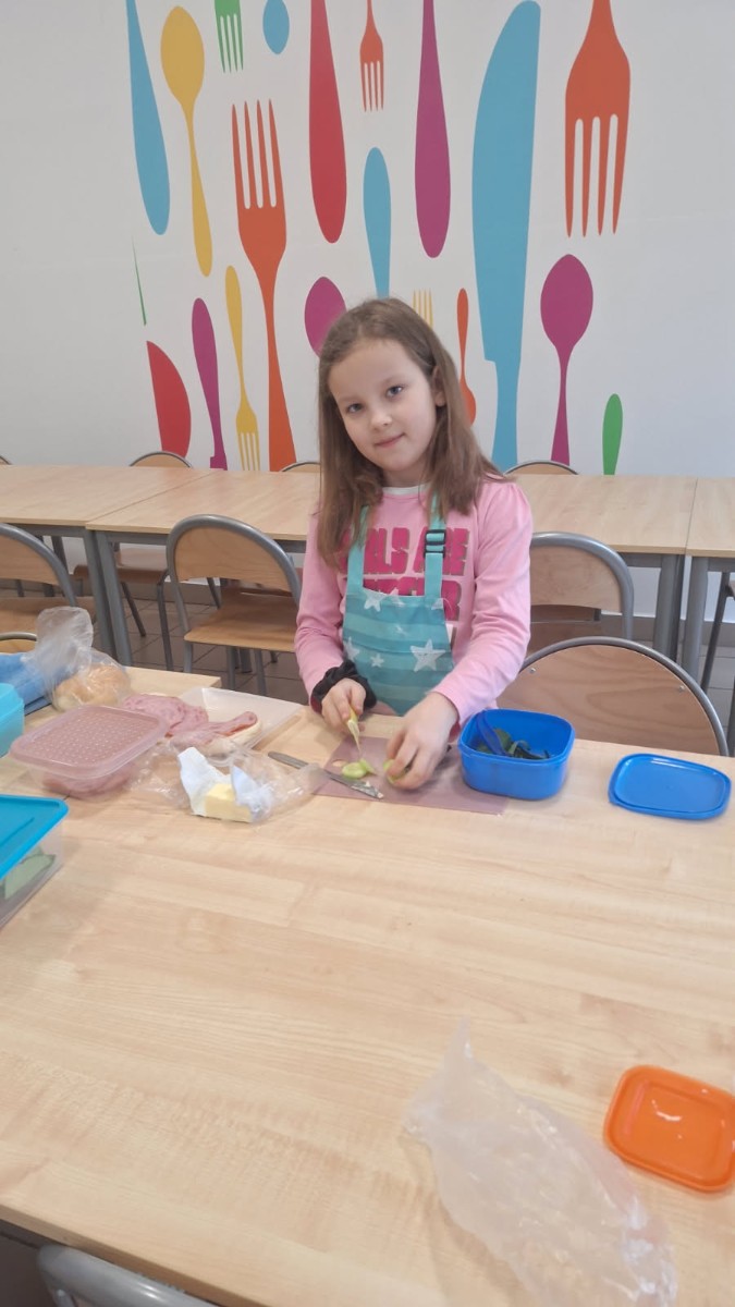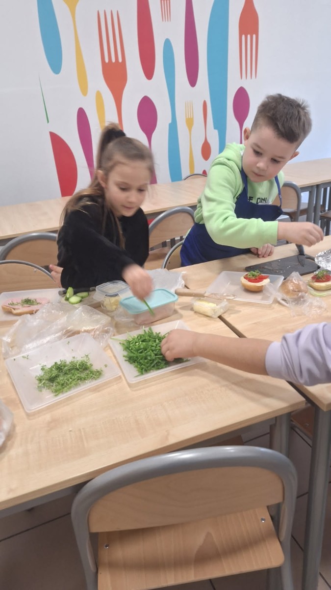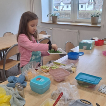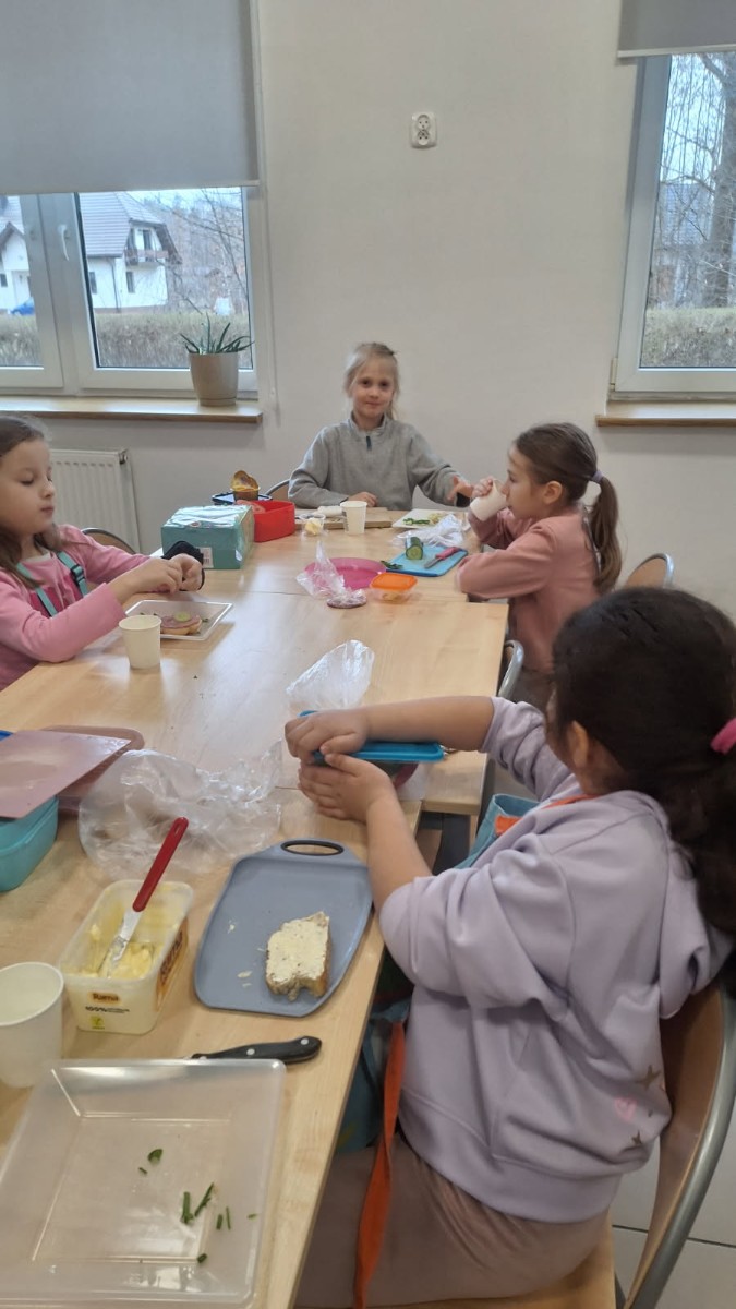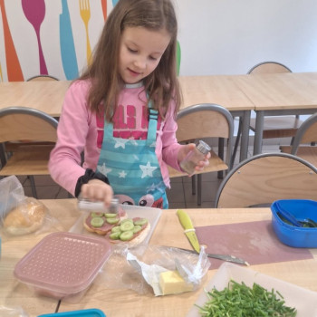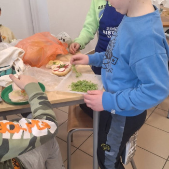 Pierwszaki z Zespołu Szkolno-Przedszkolnego w Augustówce przygotowały zdrowe,kolorowe kanapki.Wszystkie dzieci z zaangażowaniem dobierały składniki, aby każda wykonana kanapka wyglądała wyjątkowo.Na stole nie zabrakło sałaty, pomidorów,ogórków, papryki oraz samodzielnie wyhodowanej rzeżuchy i szczypiorku.Dzięki takim zajęciom dzieci kształciły w sobie odpowiednie nawyki żywieniowe,rozwijały kreatywność,wyobraźnię oraz dbałość o higienę podczas spożywania posiłków.