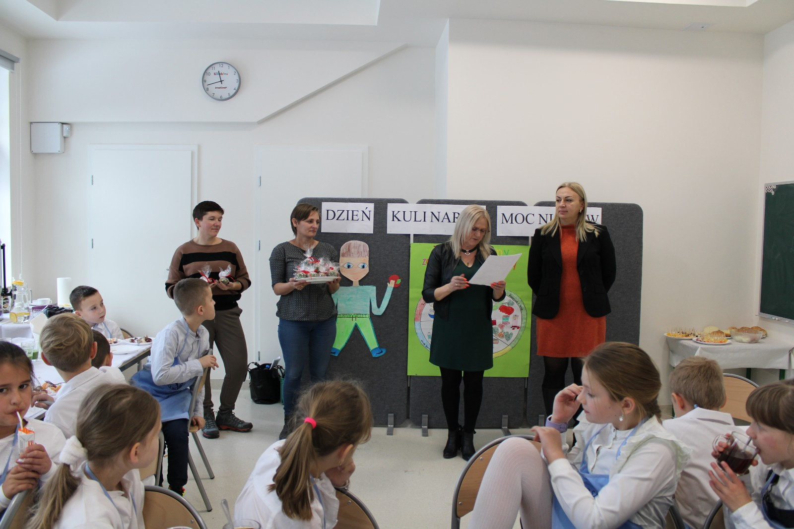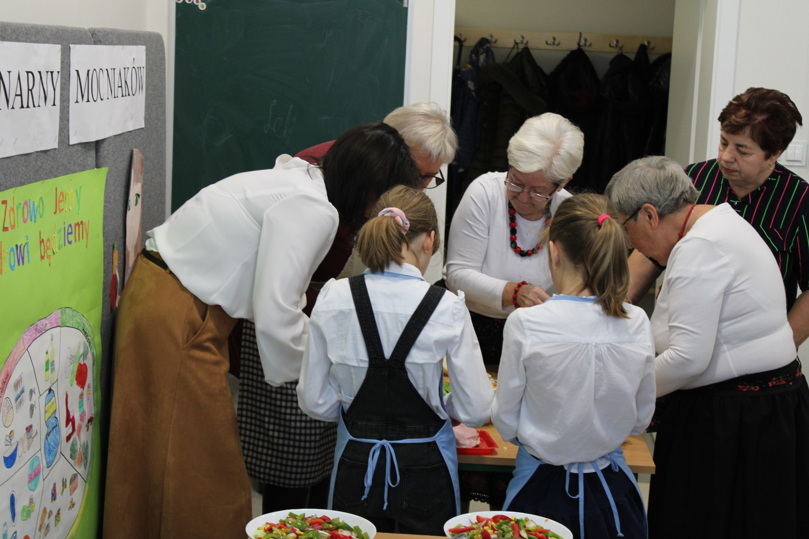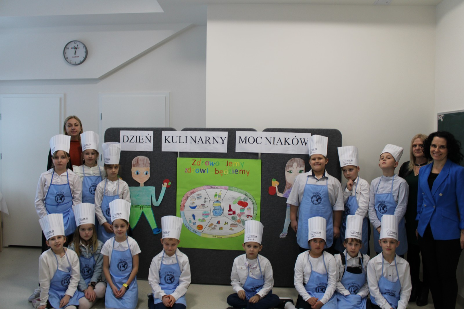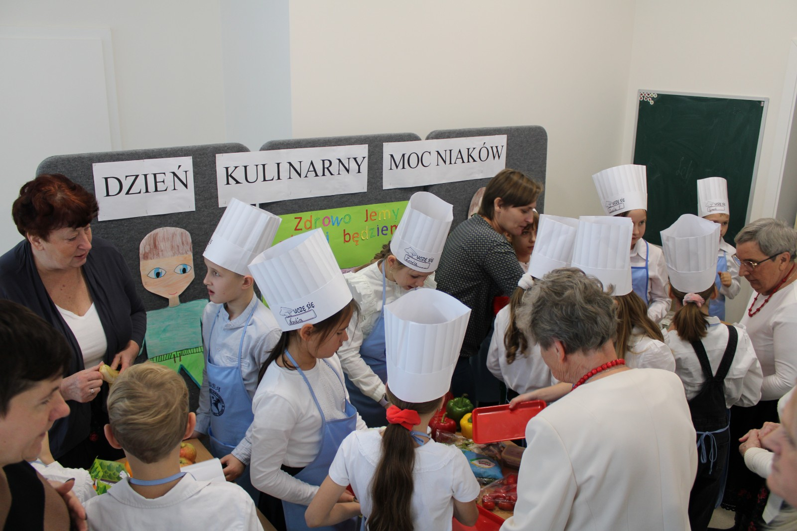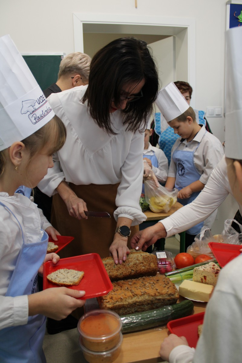 8 listopada obchodzimy Dzień Zdrowej Żywności i Gotowania.W ramach obchodów 30 listopada 2023 r. w naszej szkole zorganizowaliśmy pod kierunkiem wychowawcy P Danuty Wawer i P Joanny Zielińskiej Dzień Kulinarnych Mocniaków.Kluczowym elementem wydarzenia było wspólne przygotowanie drugiego zdrowego śniadania z dziećmi i seniorami.Na uroczystość przybyli zaproszeni goście:Pani Wójt Gminy Osieck,seniorki z Koła Gospodyń w Augustówce,członkowie Klubu Seniora z Osiecka z p Emilią Szczepaniak.