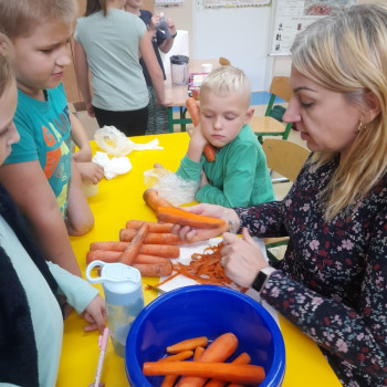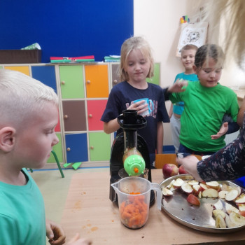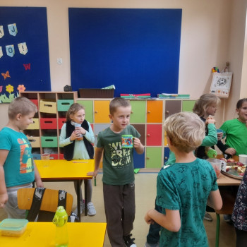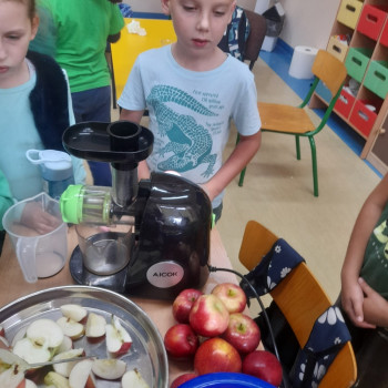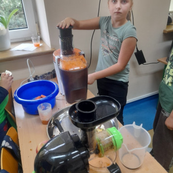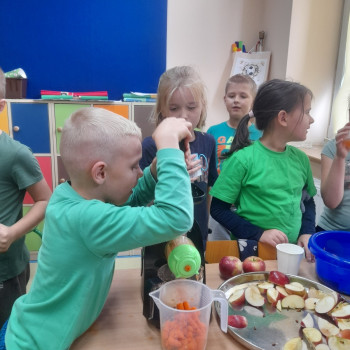 Uczniowie klasy drugiej przygotowali w ramach Tygodnia Profilaktycznego soki ze świezych owoców i warzyw. Następnie odyła się degustacja świeżo wyciśniętych owoców.