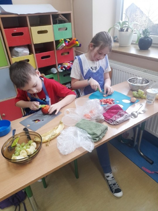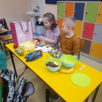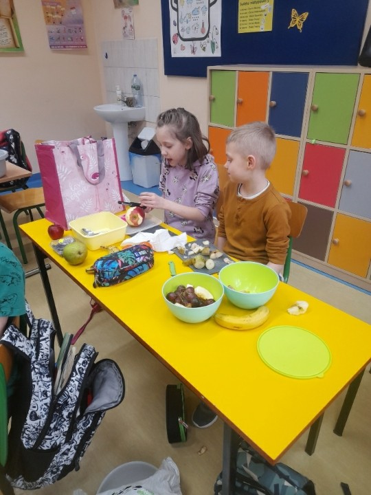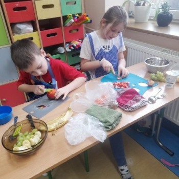 Dlatego też dzieci postanowiły zrobić pyszną zdrową sałatkę owocową.