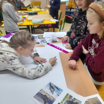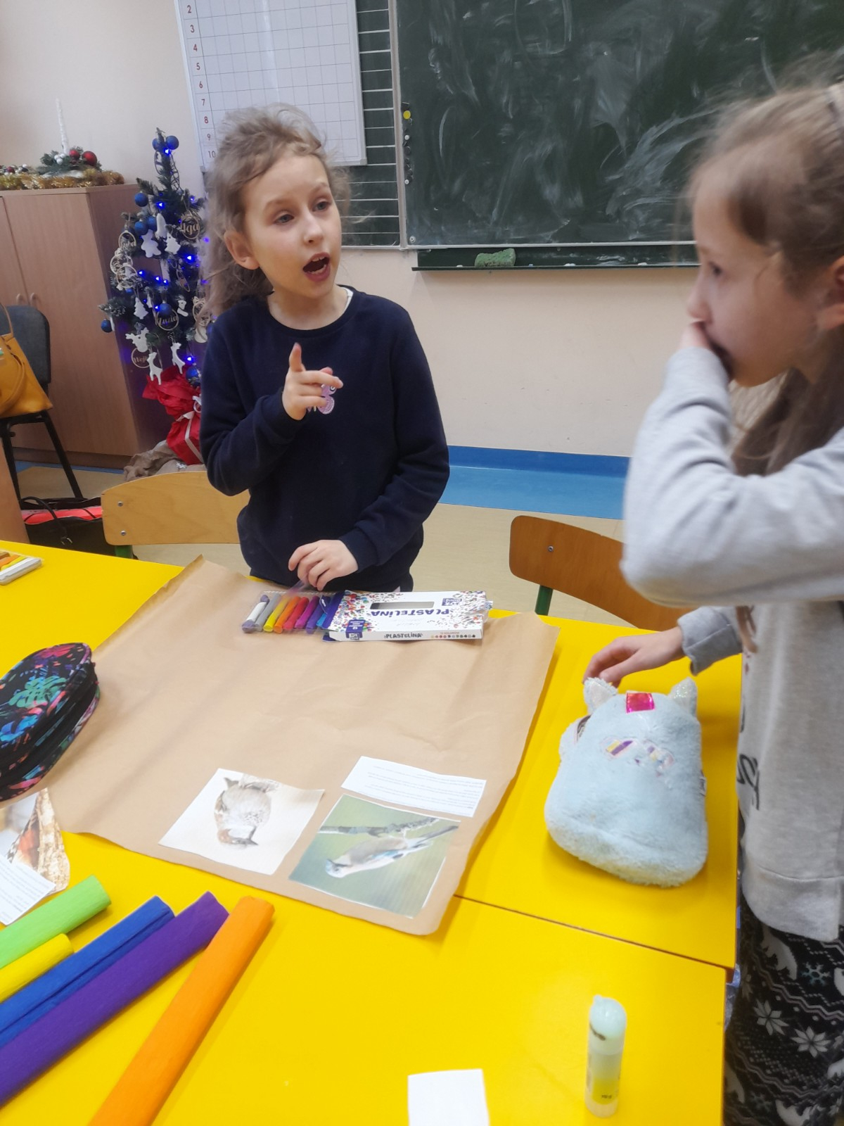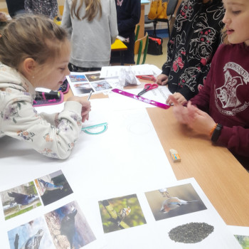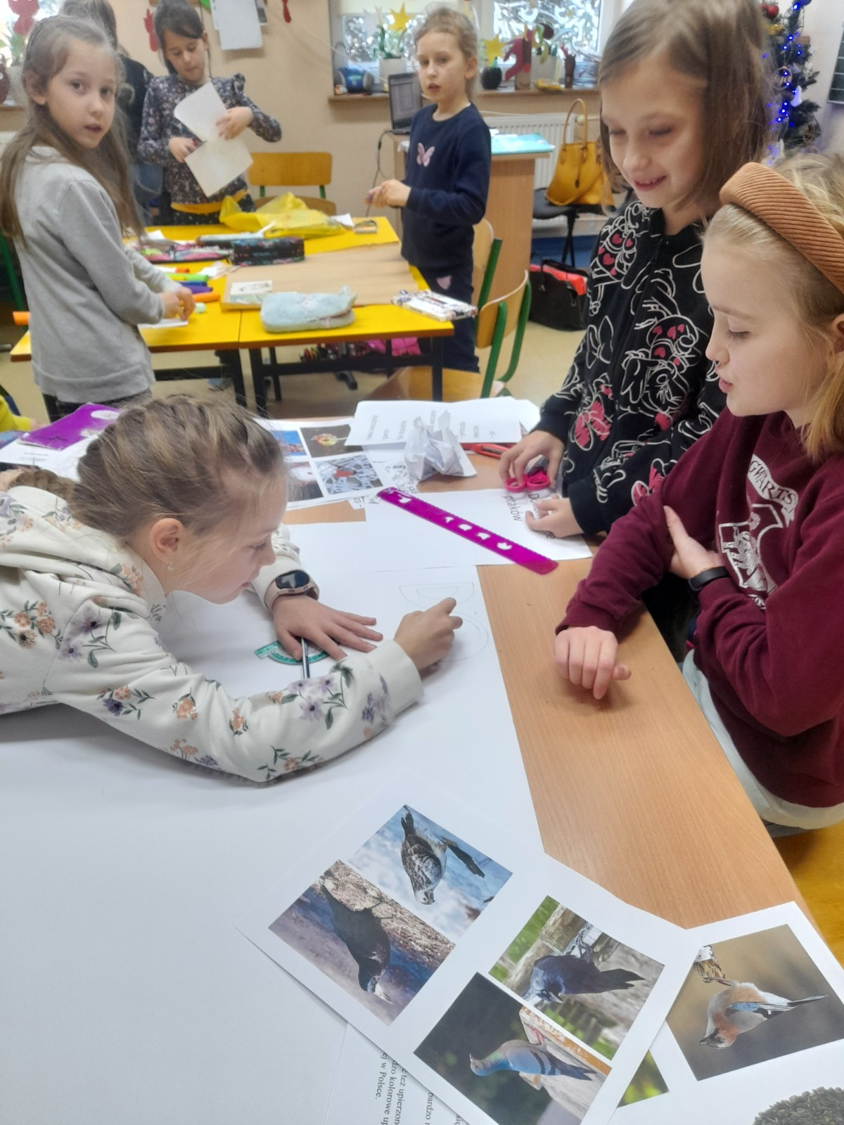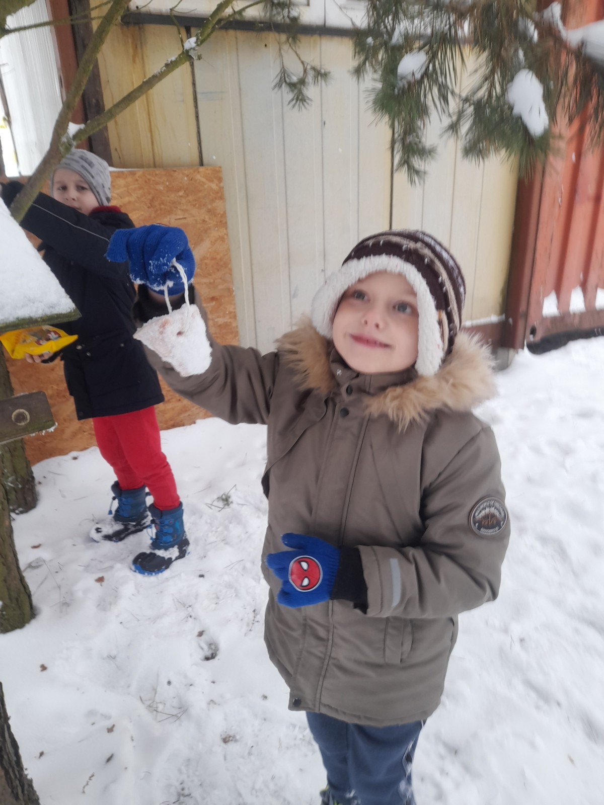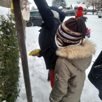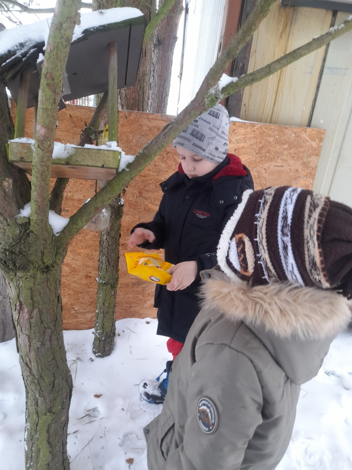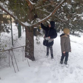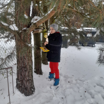 Wraz z pojawieniem się ujemnych temperatur i sporej warstwy śniegu dzieci ze Szkolnego koła Ekologicznego rozpoczeły akcję dokarmiania ptaków.