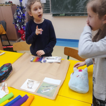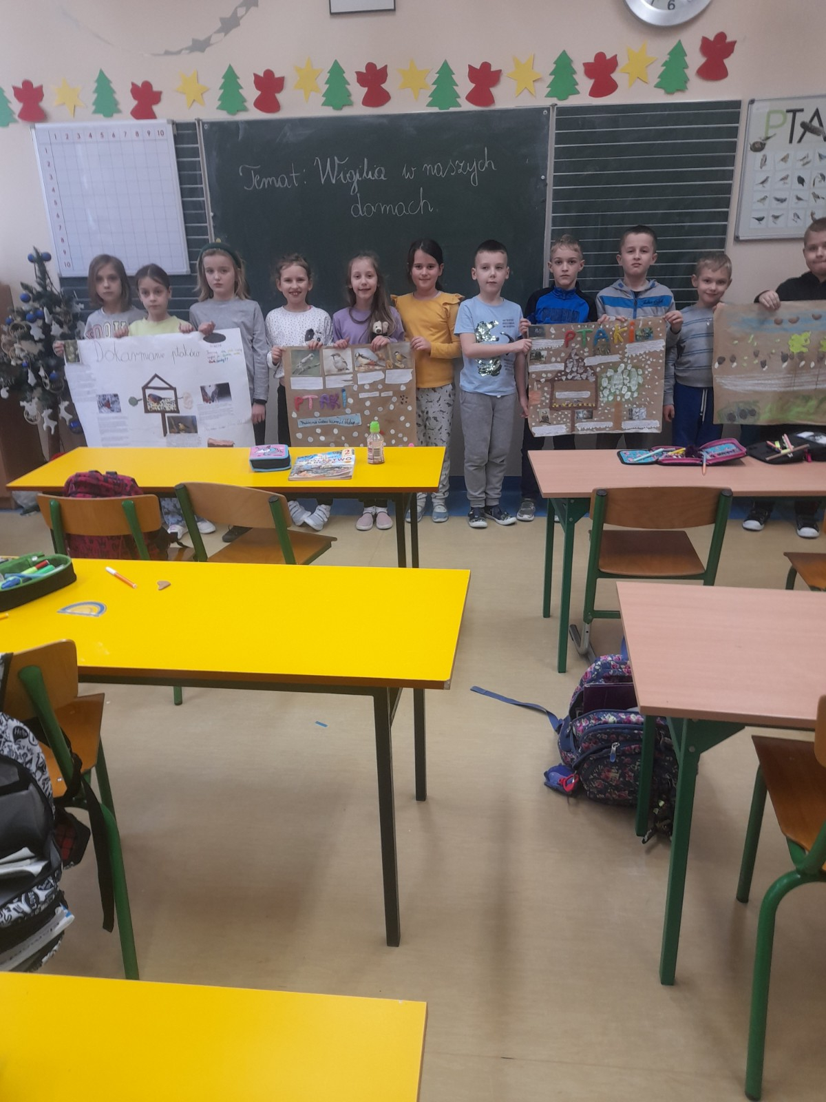Dzieci przygotowały i podzieliły na porcje smakołyki dla ptaków: ziarna zbóż, nasiona roslin oleistych, słoninę, którymi bedą dokarmiać systematycznie ptaki.