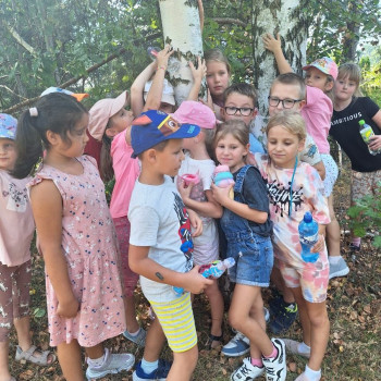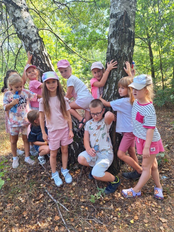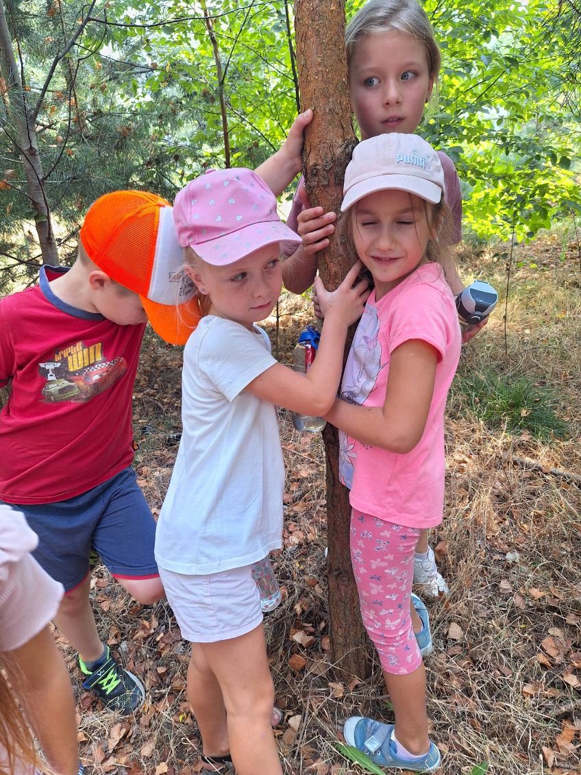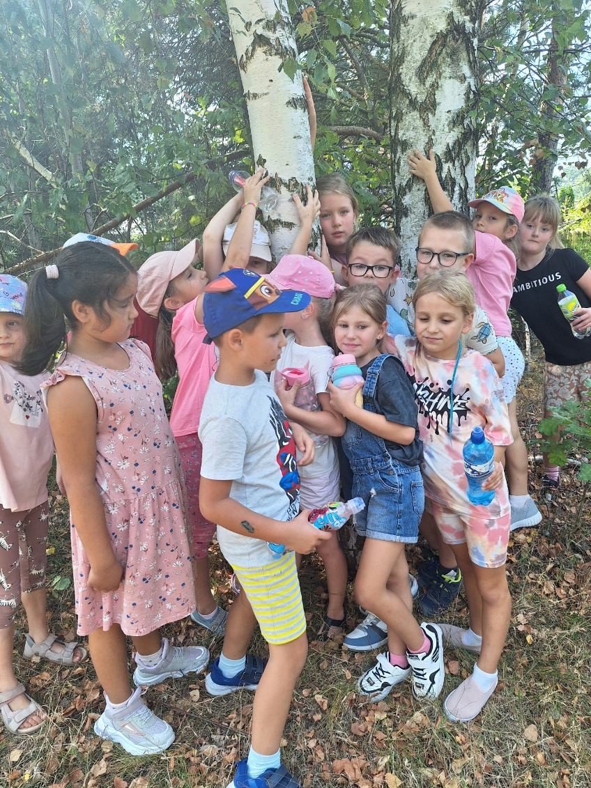 Uczniowie przytulali się do drzew, wykonując pamiątkowe zdjęcia, które następnie zostały wysłane organizatorom przedsięwzięcia.