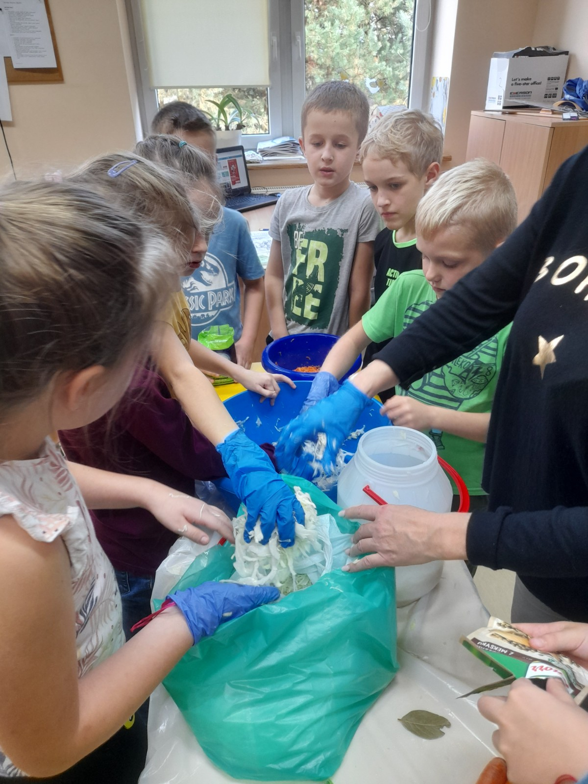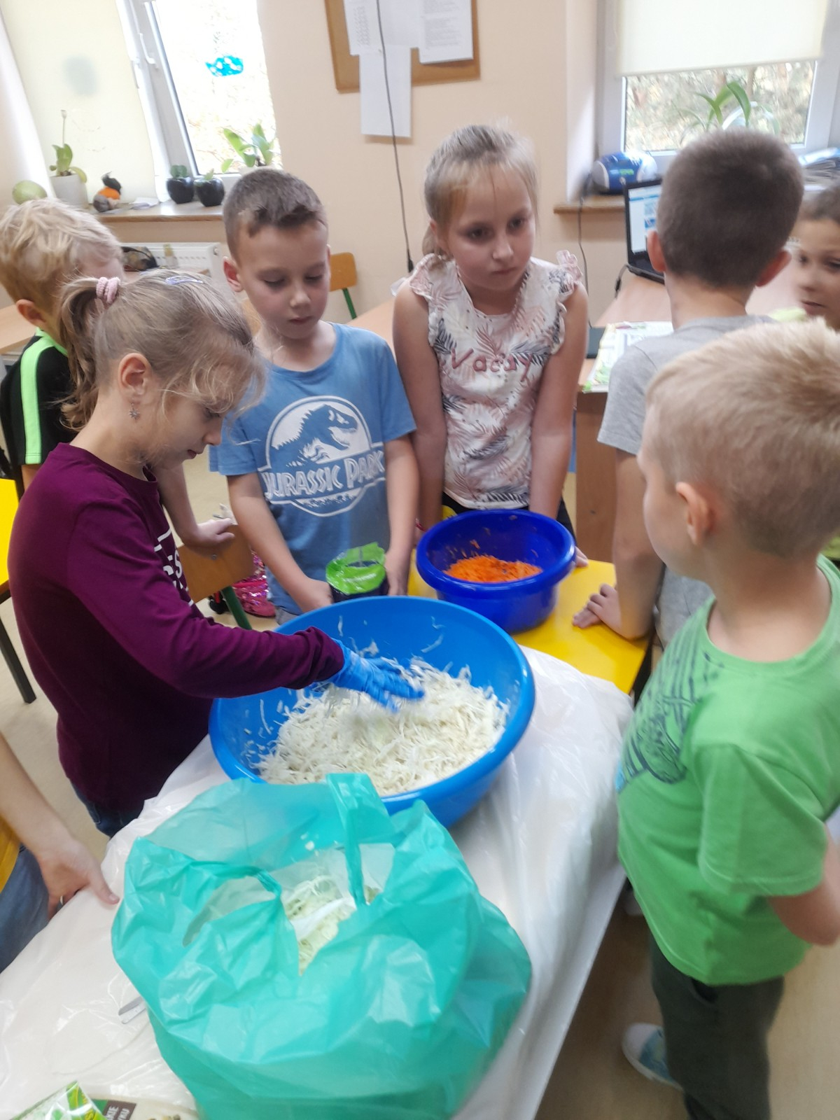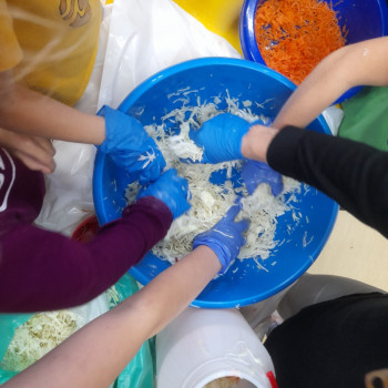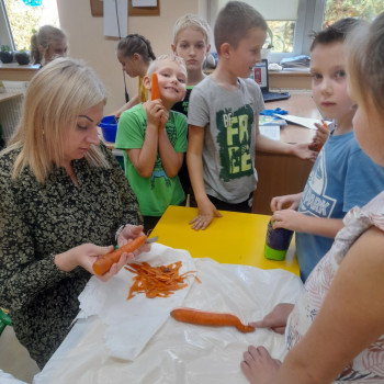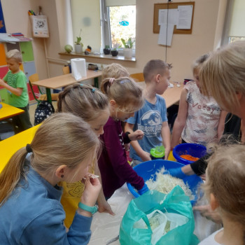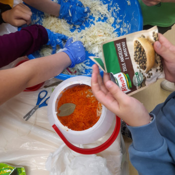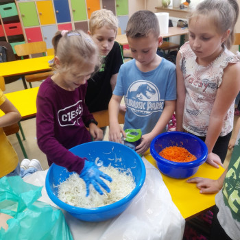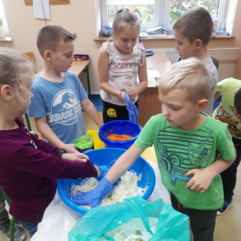 W październiku 2022 r. członkowie Koła Ekologicznego uczestniczyli w zajęciu kulinarnym i kiszona kapusta. Dzieci miały okazję poznać kapustę wszystkimi zmysłami (wzrok, smak, dotyk) i dowiedzieć się, jak dawniej przygotowywano zapasy na zimę.