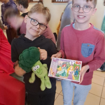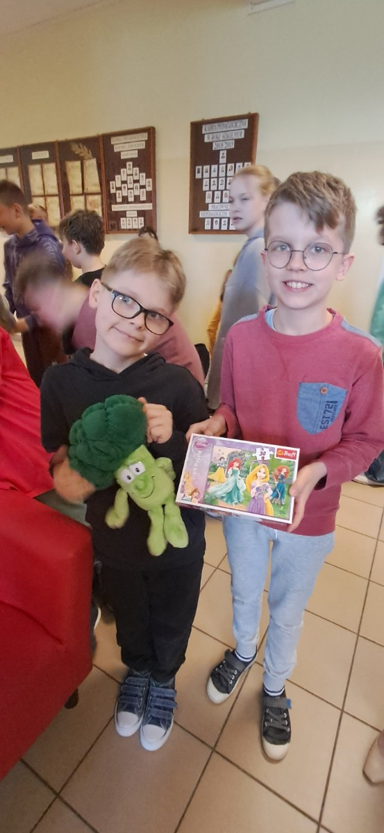 W tym dniu było mnóstwo rzeczy przyniesionych przez uczniów by się podzielić z innymi. Pierwszy podzielnik cieszył się ogromnym zainteresowaniem sprawił moc radości.
