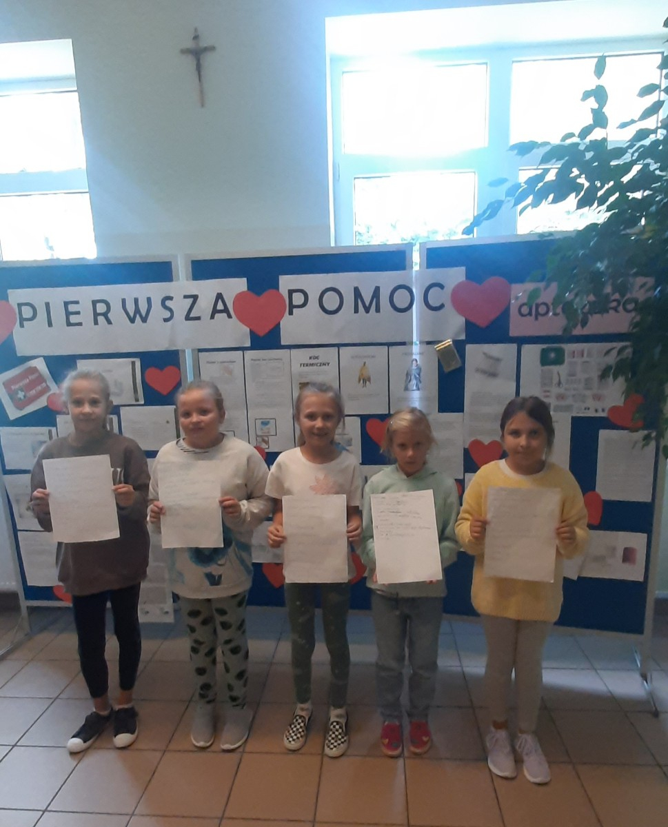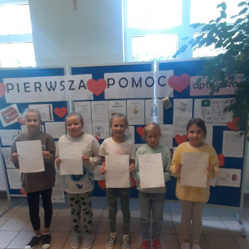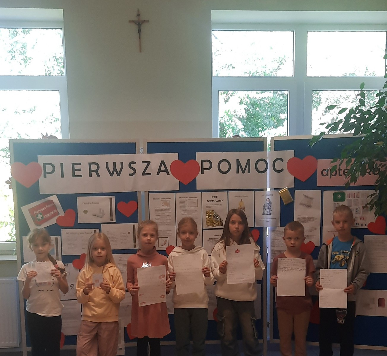 Dziękujemy uczniom kl. II - III za aktywny udział w zdobywaniu wiedzy nt. Czy wiesz co znajduje się w apteczce szkolnej? Dzieci zaznajomiły się z podstawowymi informacjami o zawartości apteczki pierwszej pomocy. Uczniowie, którzy wzięli udział zostali nagrodzeni przez Panią Dyrektor dyplomami oraz małą niespodzianką. Dziękujemy uczniom kl. IV, którzy są w szkolnym Kole PCK, za zaangażowanie i przygotowanie gazetki przez co sami pogłębili swoją wiedzę.