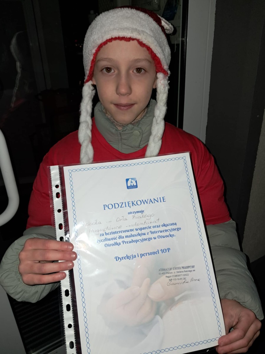Dnia 06.12.2024r. jedna z naszych wolontariuszek szkolnego Koła PCK Weronika w imieniu całej społeczności szkolnej przekazała najpotrzebniejsze leki dla maluszków z IOP w Otwocku.