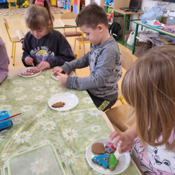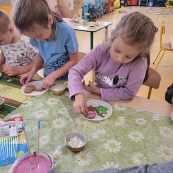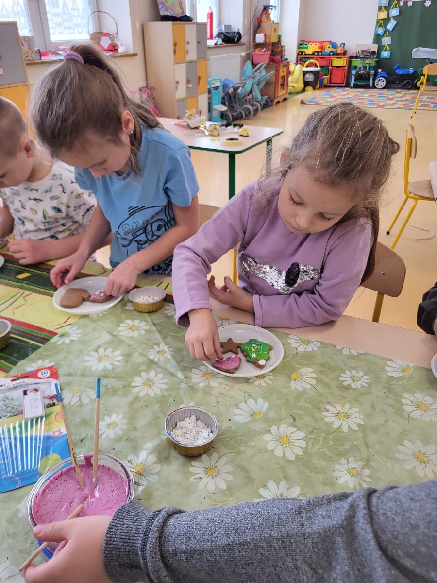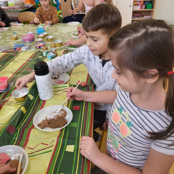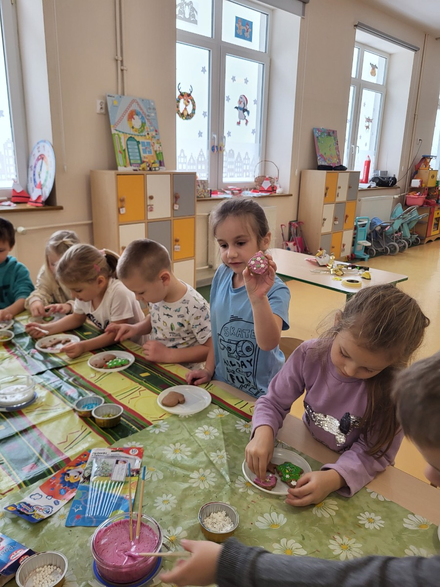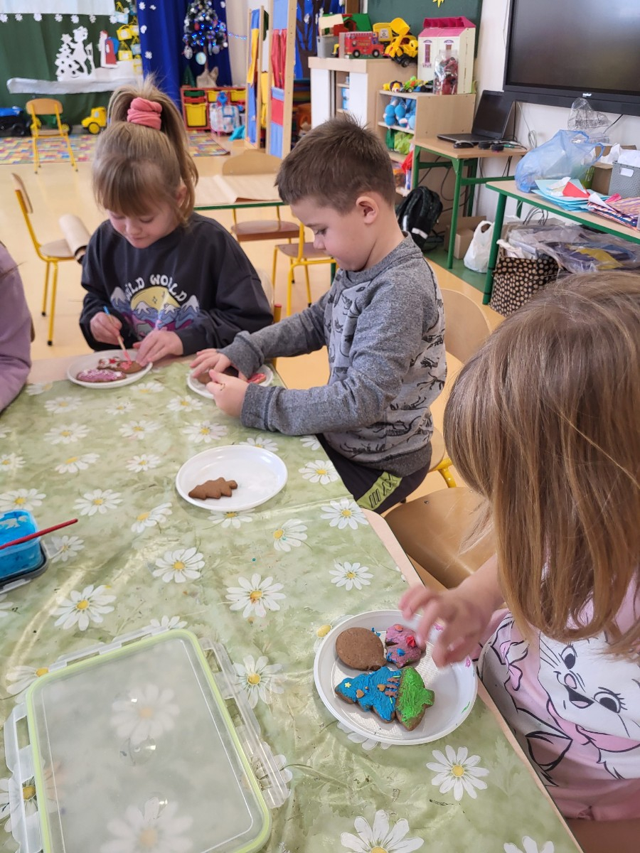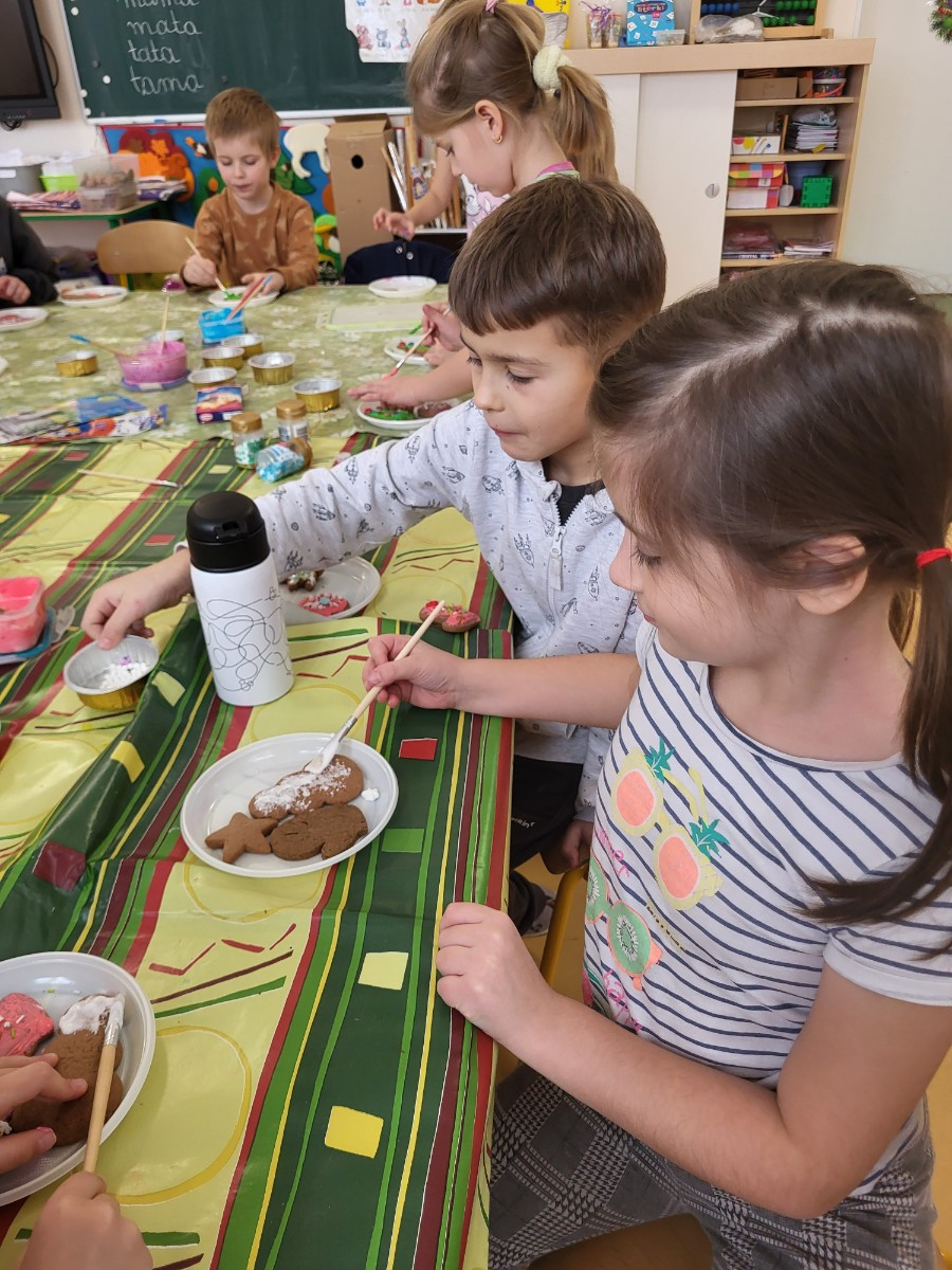 7 grudnia nasze zerówiaki miały super frajdę . Rodzice upiekli pierniczki , a dzieci je dekorowały kolorowymi lukrami i posypkami.